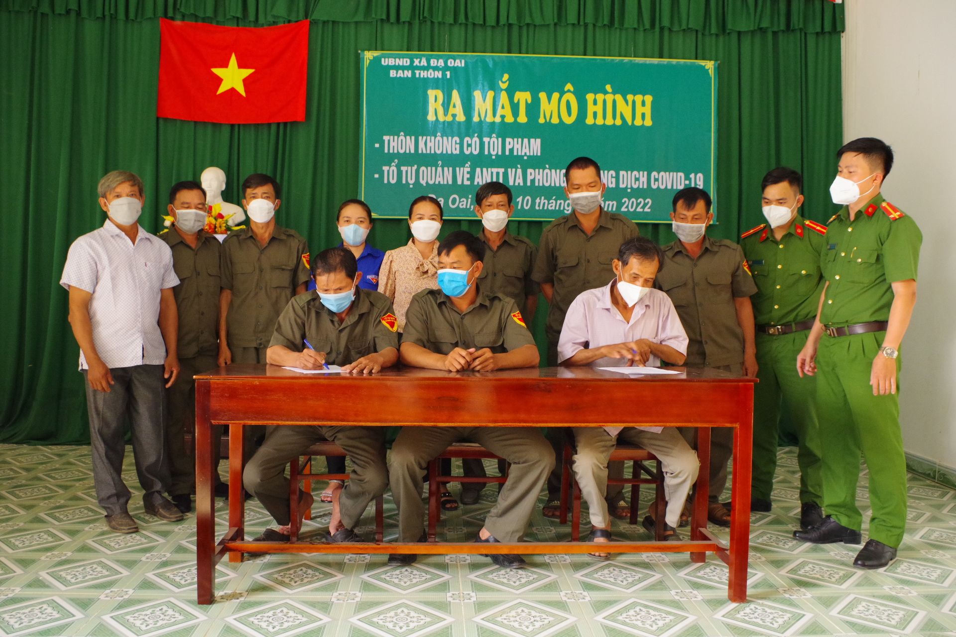 Xã Đạ Oai là địa phương xây dựng mô hình “Thôn không có tội phạm” hoàn chỉnh nhất trên 6/6 thôn với 54 thành viên tham gia. Mô hình này ban đầu được xây dựng điểm tại thôn 6, sau đó nhân rộng xây dựng tại thôn 3 và các thôn còn lại. Hằng năm, các thôn phải xây dựng và triển khai kế hoạch về xây dựng “Thôn không có tội phạm”, 100% hộ gia đình cam kết bằng văn bản xây dựng thôn không có tội phạm và gia đình không có người vi phạm pháp luật.