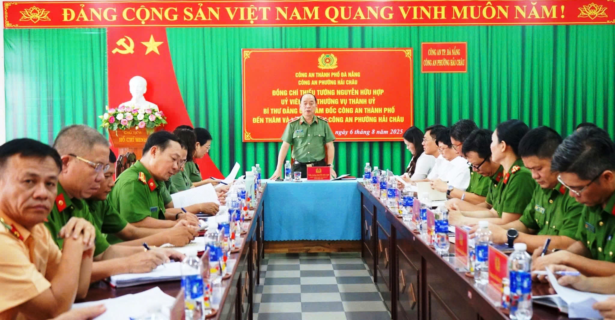 Thiếu tướng Nguyễn Hữu Hợp, Bí thư Đảng ủy, Giám đốc Công an thành phố Đà Nẵng kiểm tra, làm việc với Công an phường Hải Châu, thành phố Đà Nẵng.