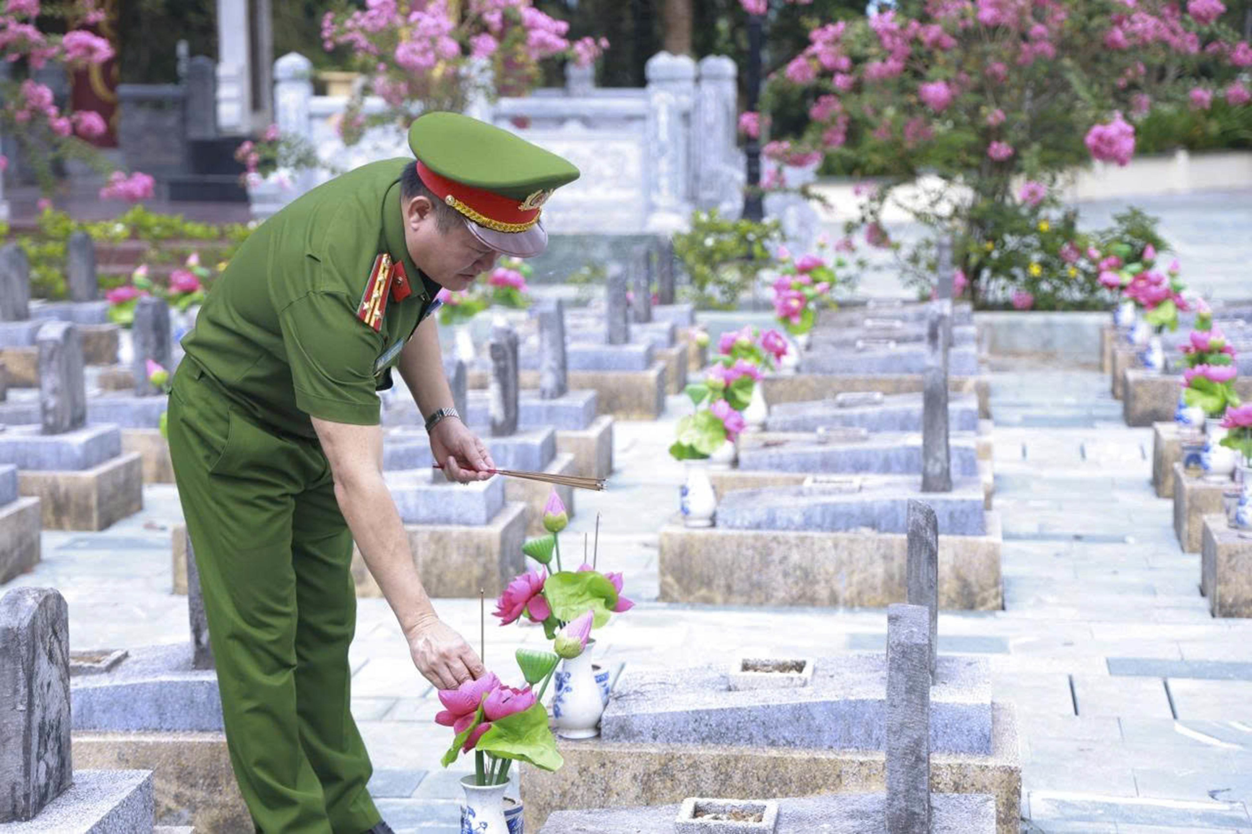 Phóng viên: Và trong lịch sử đấu tranh bảo vệ Tổ quốc, mảnh đất Quảng Trị đã có không ít những tấm gương liệt sĩ công an tiêu biểu ngã xuống vì Tổ quốc. Sự hy sinh của họ đã trở thành biểu tượng của lòng yêu nước, và lực lượng công an Quảng Trị hôm nay tiếp bước và tri ân như thế nào, thưa đồng chí?
