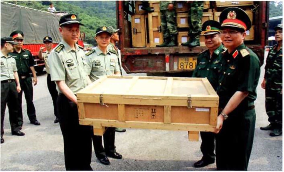 Thiếu tướng Lê Mạnh Tiến, Phó Cục trưởng Cục Cứu hộ-Cứu nạn tiếp nhận trang bị do Bộ Quốc phòng Trung Quốc tặng Bộ Quốc phòng Việt Nam tại Cửa khẩu Tân Thanh, Lạng Sơn (năm 2018).