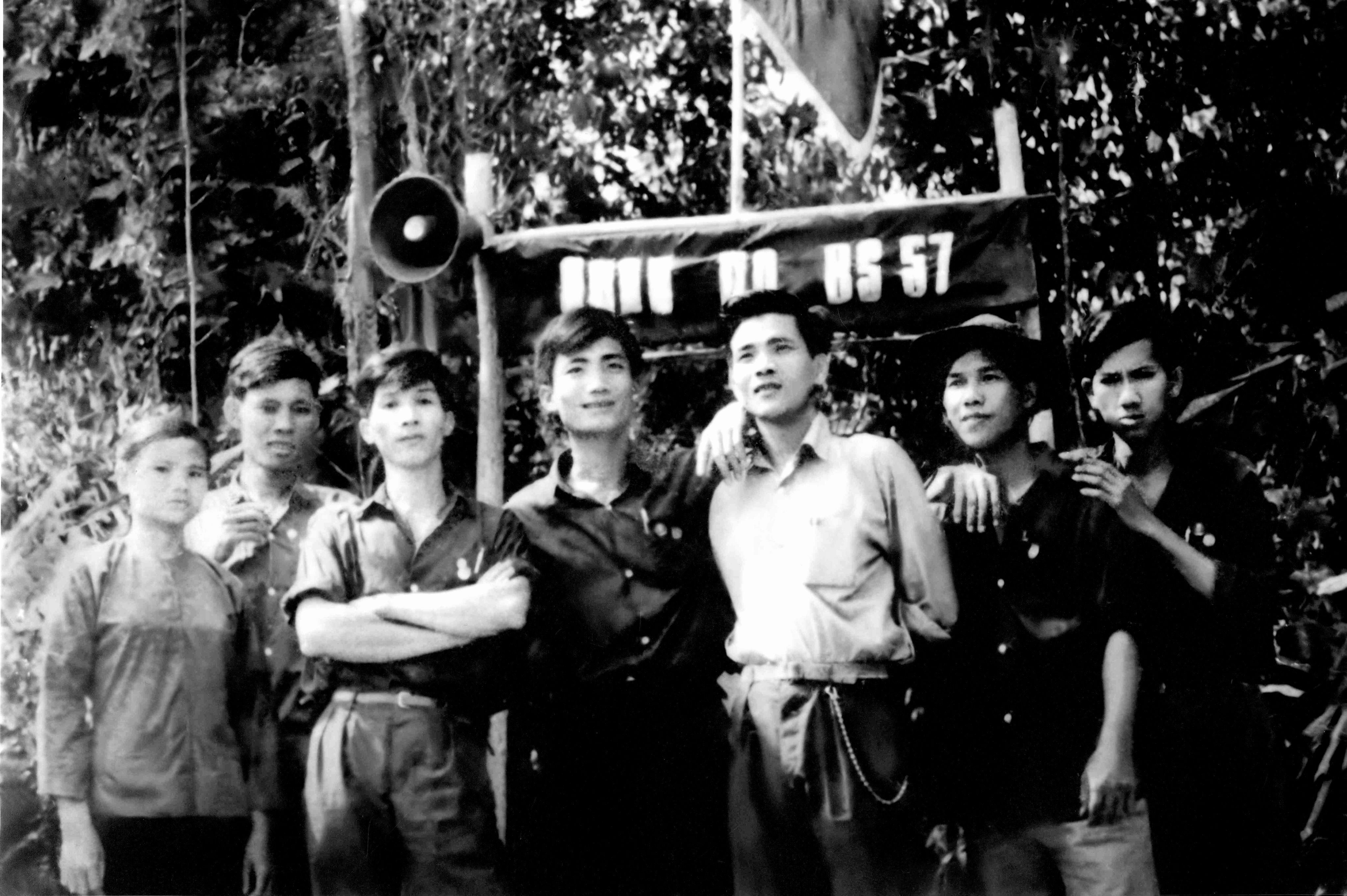 Đại hội Đoàn bộ B5/57 (từ trái qua: đồng chí Tuyết Mai, Tỷ, Thẩm Trung Nghĩa, Châu Á, Thinh)