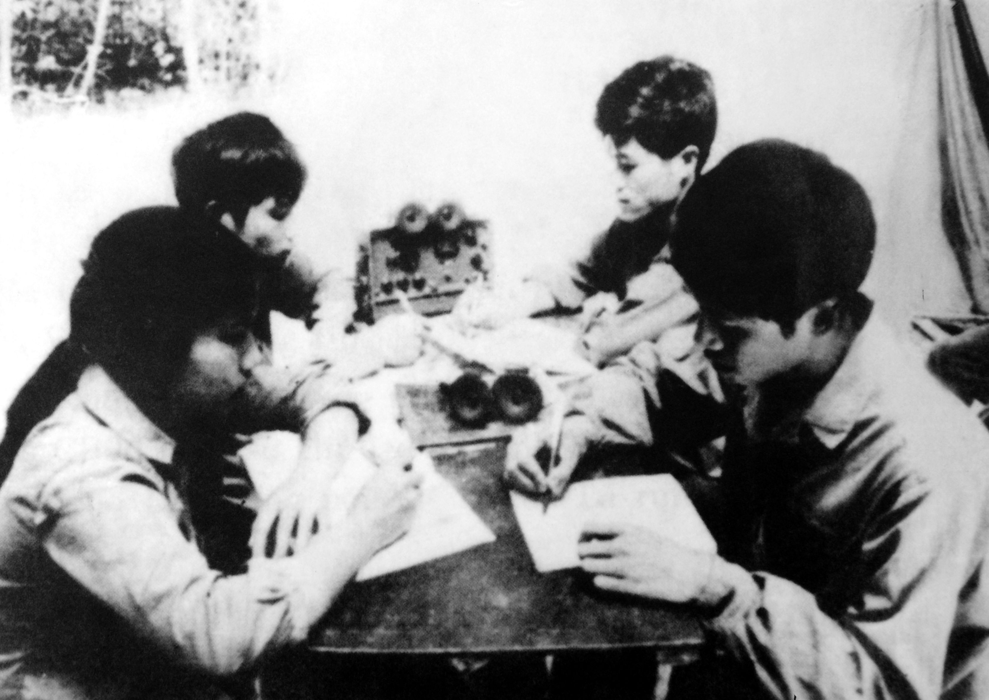 Các đồng chí phụ trách kỹ thuật của B5/4 và B5/5 (Điện báo và Bá âm) Đài Phát thanh Giải Phóng đang chuyển chương trình cho Đài phát thanh Giải phóng A.