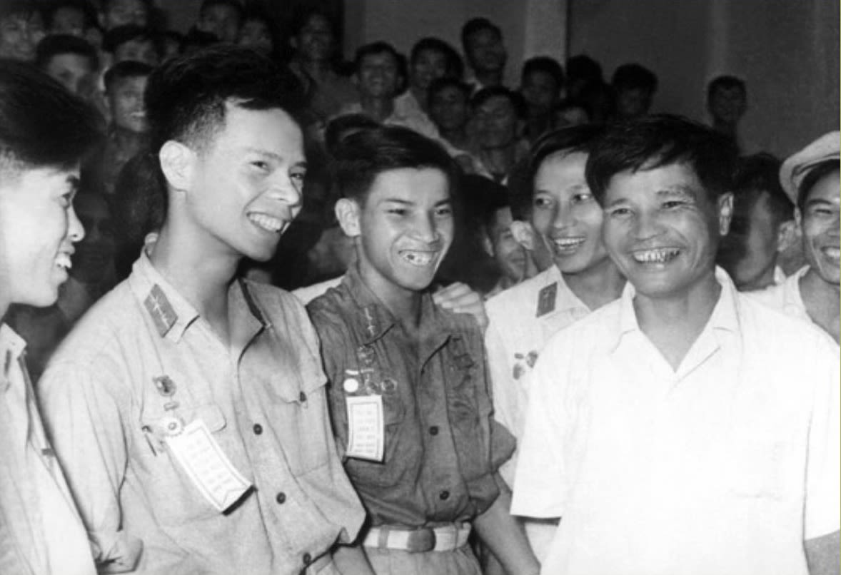 Đại tướng Nguyễn Chí Thanh, Ủy viên Bộ Chính trị, Bí thư Trung ương Cục miền Nam, Chính ủy quân giải phóng miền Nam nói chuyện với dũng sĩ diệt Mỹ dự đại hội liên hoan dũng sĩ diệt Mỹ lần thứ nhất năm 1965. Ảnh tư liệu