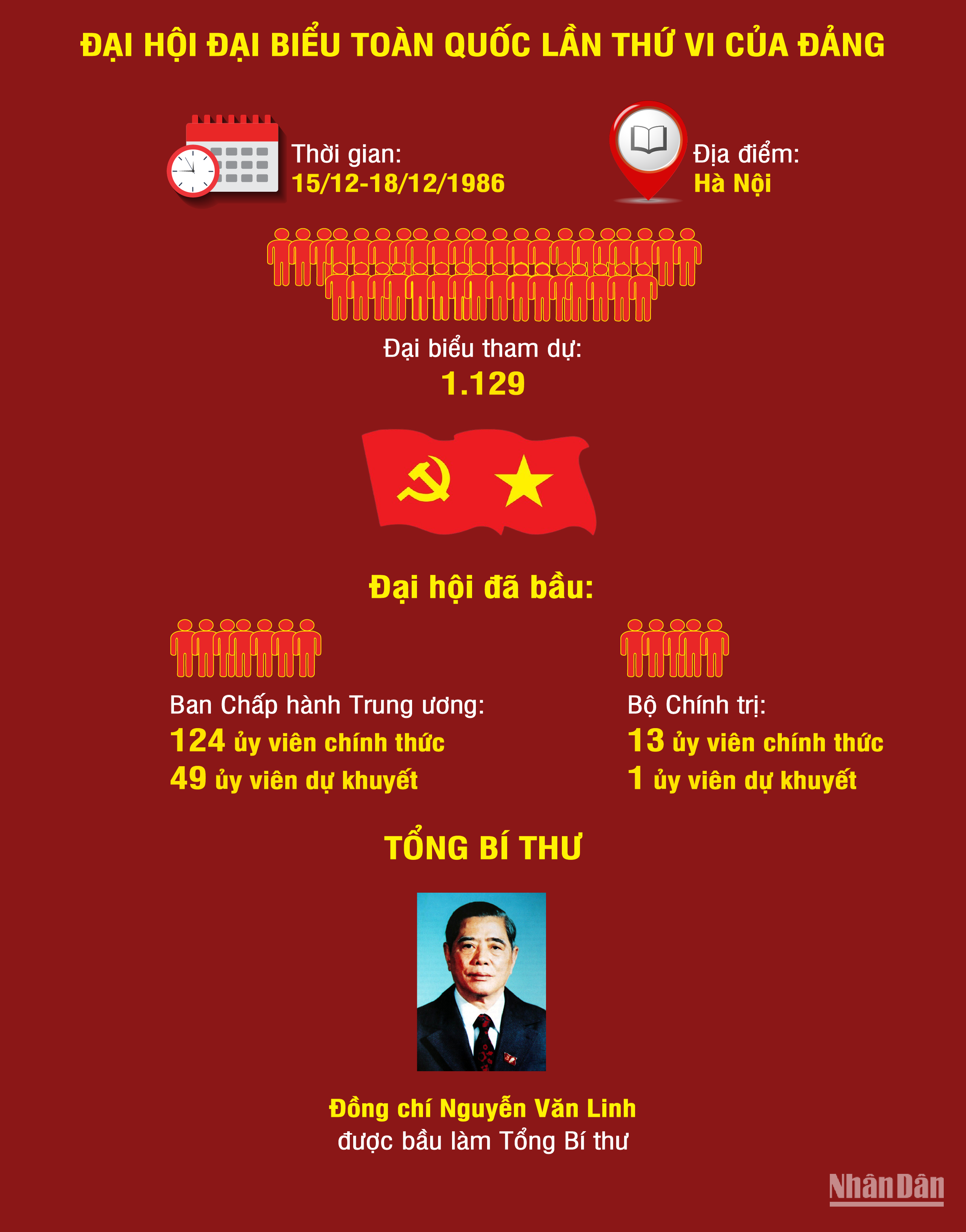 Đại hội đại biểu toàn quốc lần thứ VI của Đảng họp từ ngày 15/12 đến 18/12/1986, tại Thủ đô Hà Nội