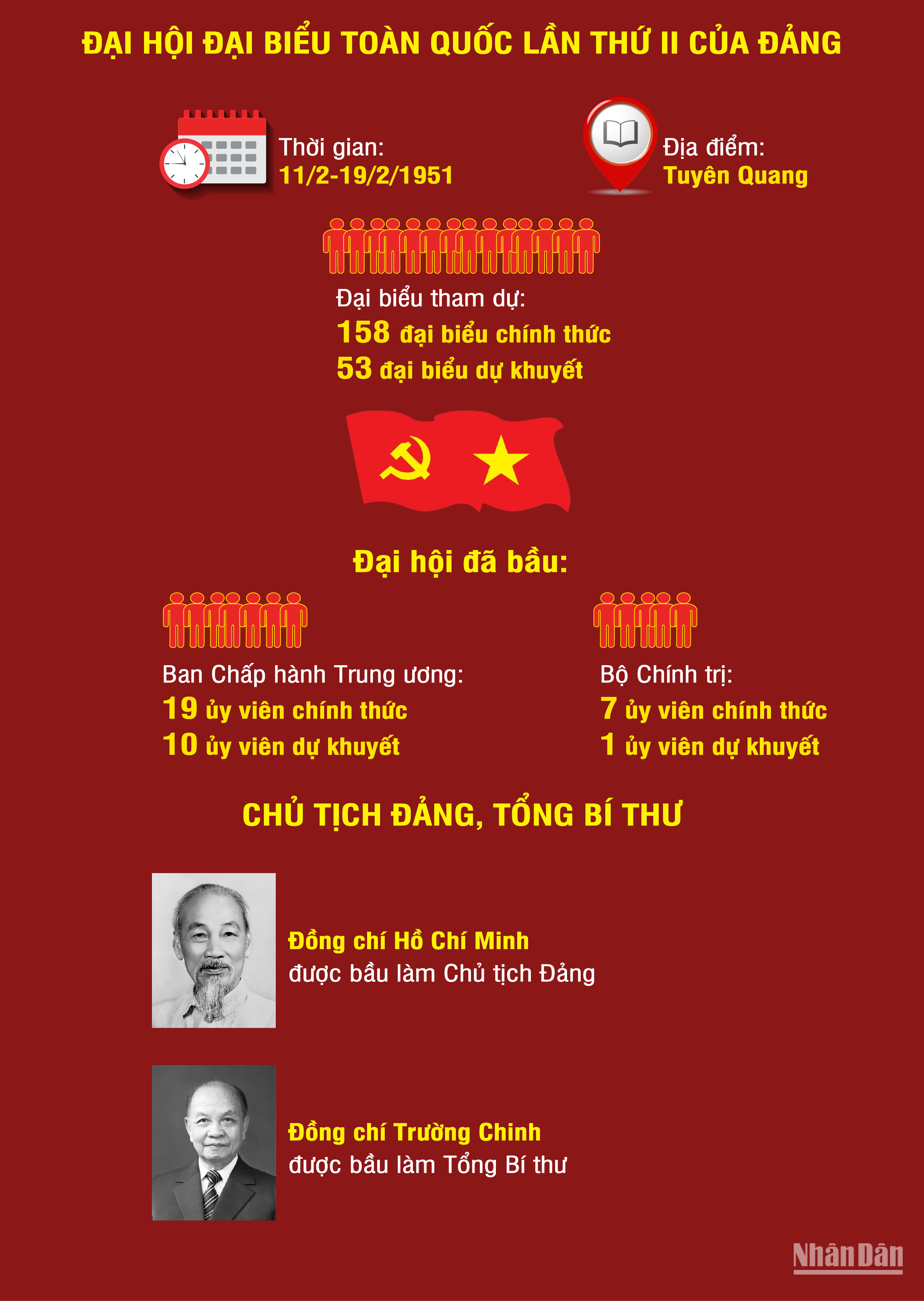 Đại hội đại biểu toàn quốc lần thứ II của Đảng họp từ 11/2 đến 19/2/1951, tại xã Vinh Quang (nay là xã Kim Bình), huyện Chiêm Hóa, tỉnh Tuyên Quang
