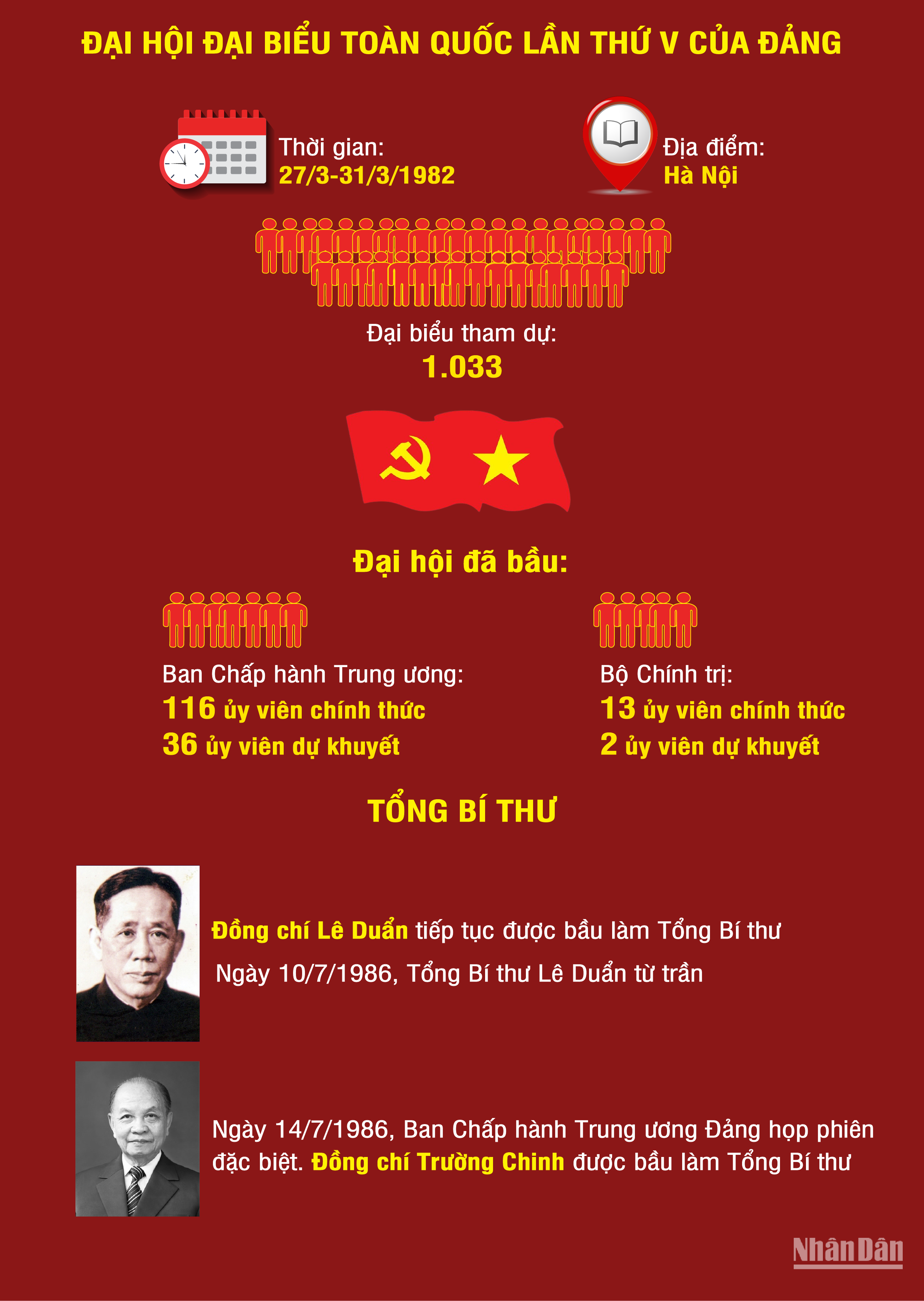 Đại hội đại biểu toàn quốc lần thứ V của Đảng họp từ ngày 27/3 đến 31/3/1982, tại Thủ đô Hà Nội
