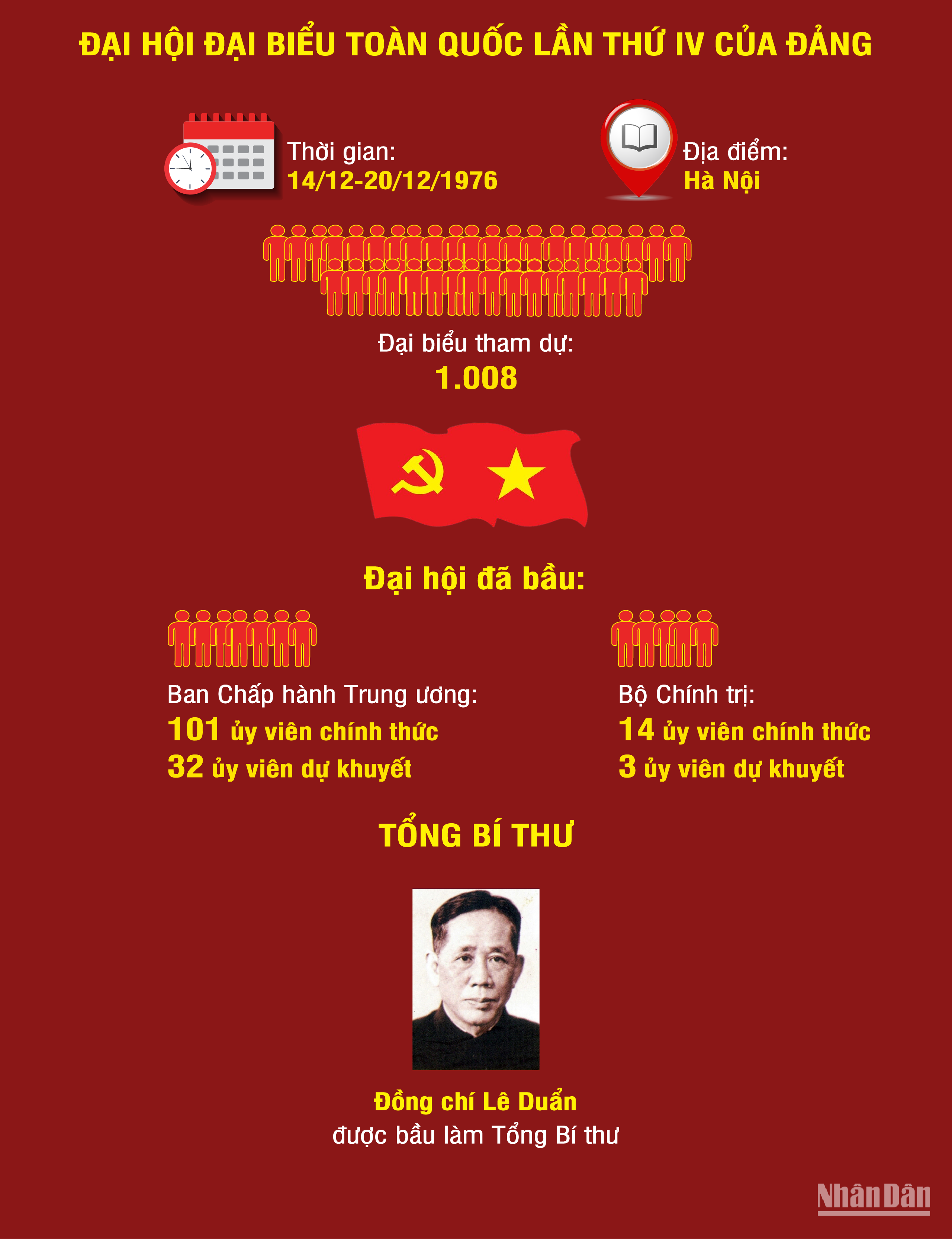 Đại hội đại biểu toàn quốc lần thứ IV của Đảng họp từ ngày 14/12 đến 20/12/1976, tại Thủ đô Hà Nội