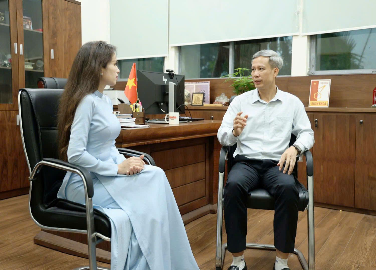 Phóng viên Thu Hà trao đổi với GS.TS Lê Anh Tuấn, Bí thư Đảng ủy, Chủ tịch Hội đồng đại học, Đại học Bách khoa Hà Nội