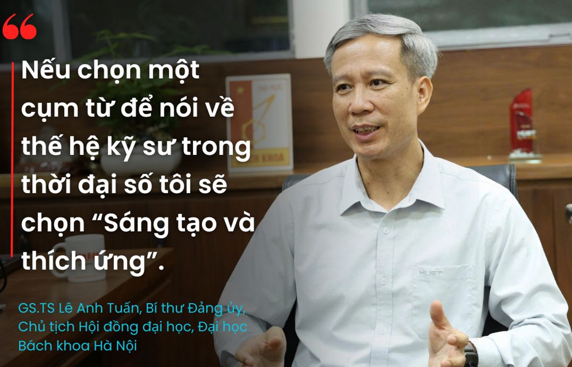 GS.TS Lê Anh Tuấn: Nếu chọn một cụm từ để nói về thế hệ kỹ sư trong thời đại số tôi sẽ chọn “Sáng tạo và thích ứng”. Trong thời đại hiện nay và trong tương lai, khoa học, công nghệ liên tục thay đổi, thế giới nói chung và thế giới số nói riêng hàm chứa nhiều biến động, sự không chắc chắn, phức tạp và mơ hồ (thế giới VUCA), ranh giới ngành nghề không còn rõ ràng, nhiều nghành nghề có thể mất đi nhưng ngành nghề mới lại được hình thành. Kiến thức học được hôm nay có thể lỗi thời chỉ sau vài năm và cuộc sống buộc chúng ta phải làm việc trong môi trường đa văn hóa, đa ngôn ngữ. Do đó bắt buộc kỹ sư phải có một nền tảng chuyên môn cơ bản vững vàng để “sáng tạo” khi tham gia vào các hoạt động thực tiễn và có kỹ năng, sức khỏe và linh hoạt để sẵn sàng “thích ứng” với những bối cảnh mới, thách thức mới.