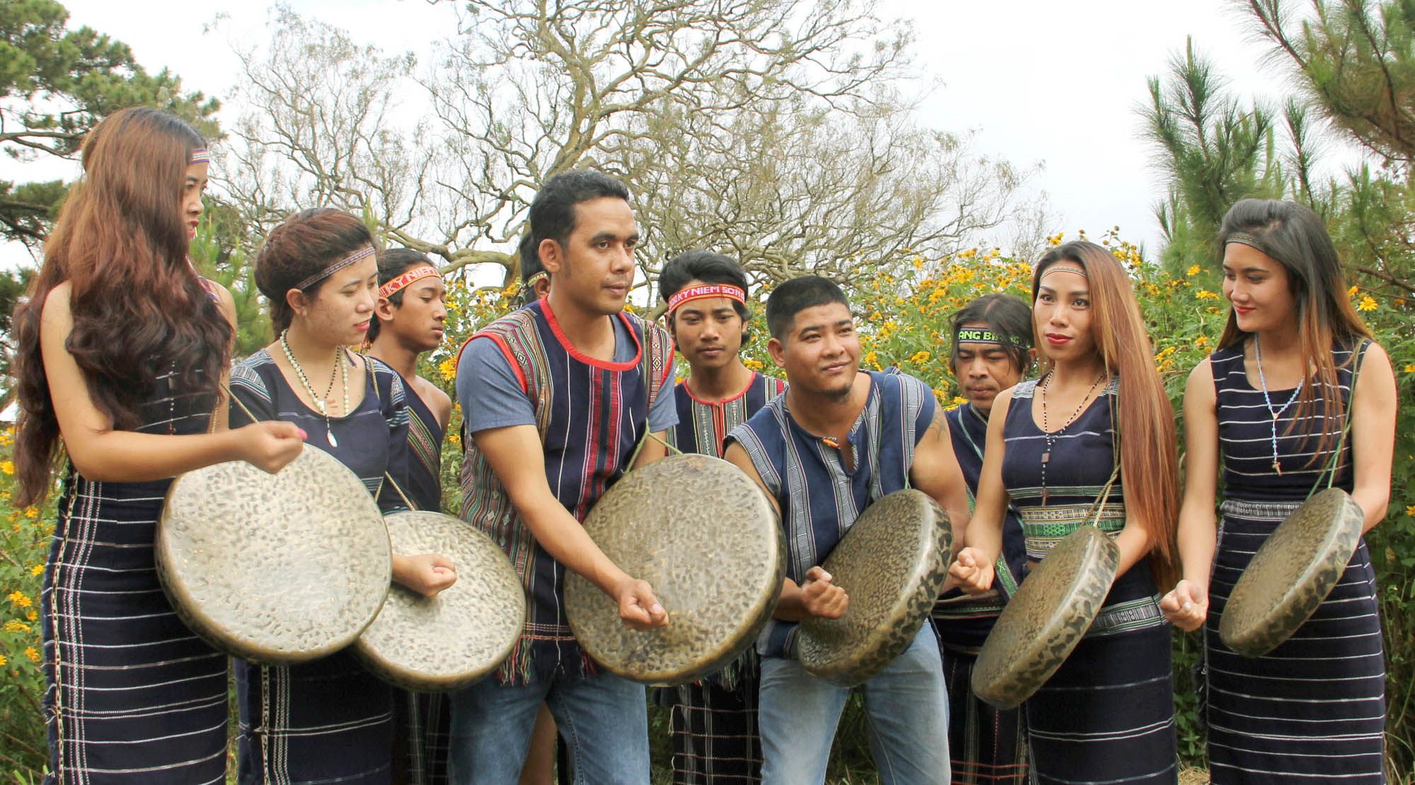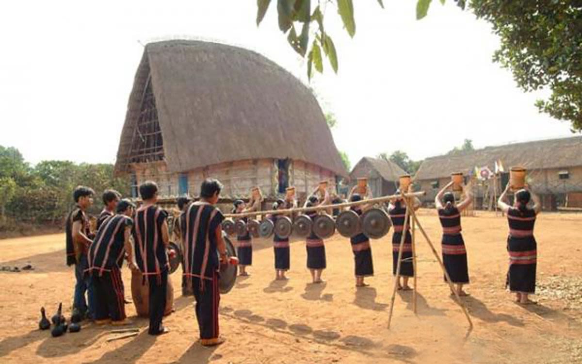 从山石,林竹而锣、钲、石琴(lúrgòong)、汀宁琴(tingning)、特龙琴(klôngpút)、绍竹琴(t’rưng)等乐器已奏响神奇的声音。