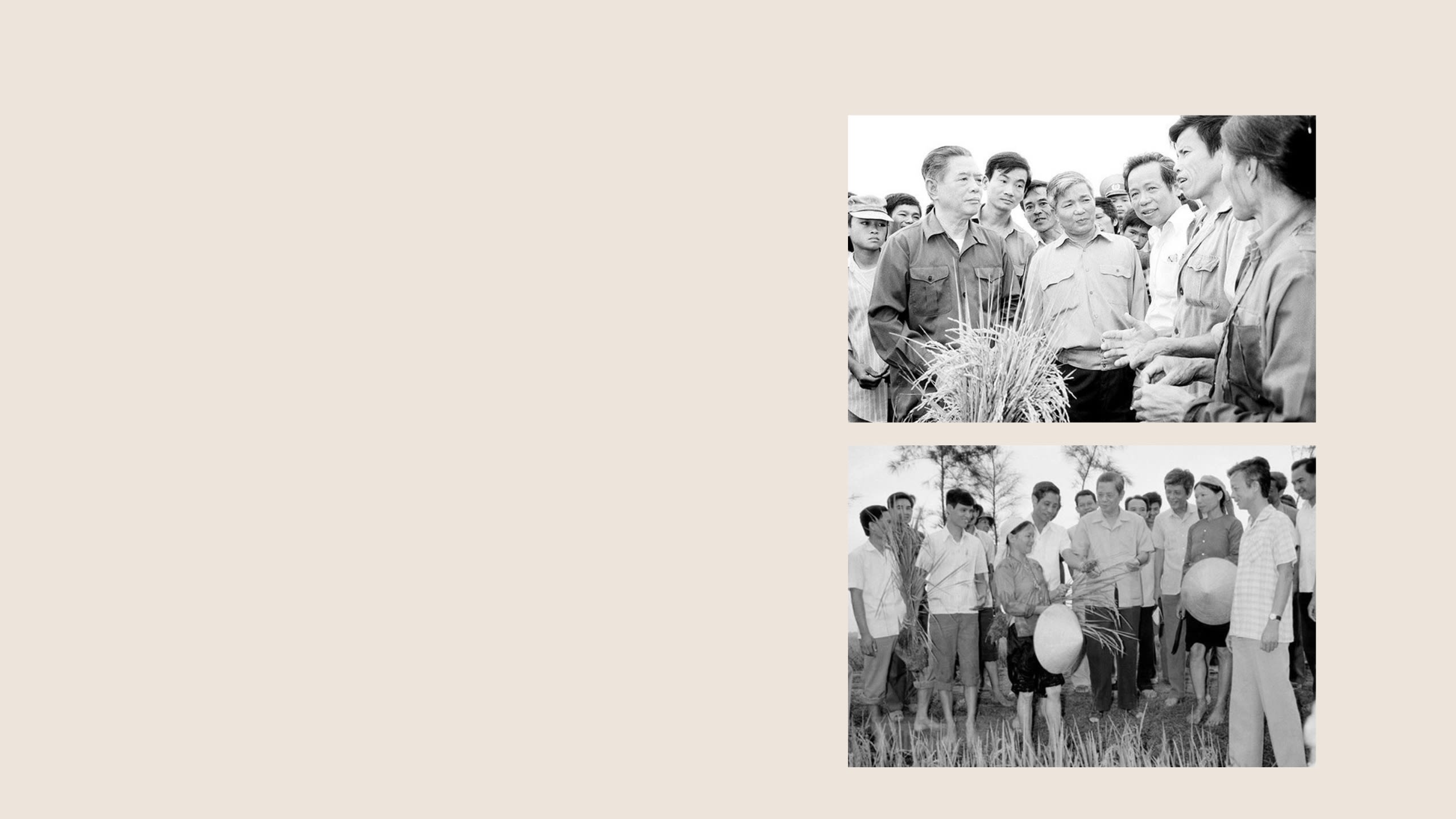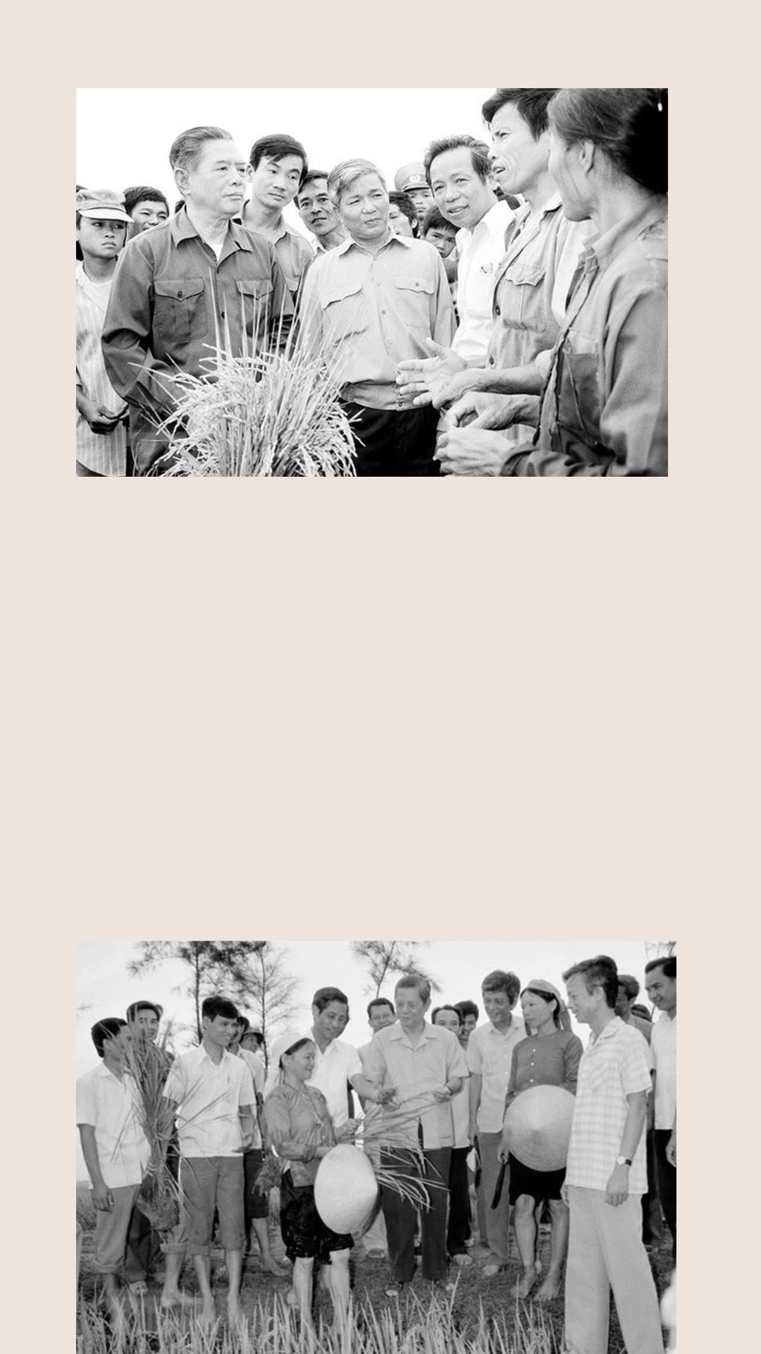 Tổng Bí thư Nguyễn Văn Linh thăm cánh đồng lúa của Hợp tác xã Hải Vân (Hải Hậu, tỉnh Hà Nam Ninh) năm 1988.
