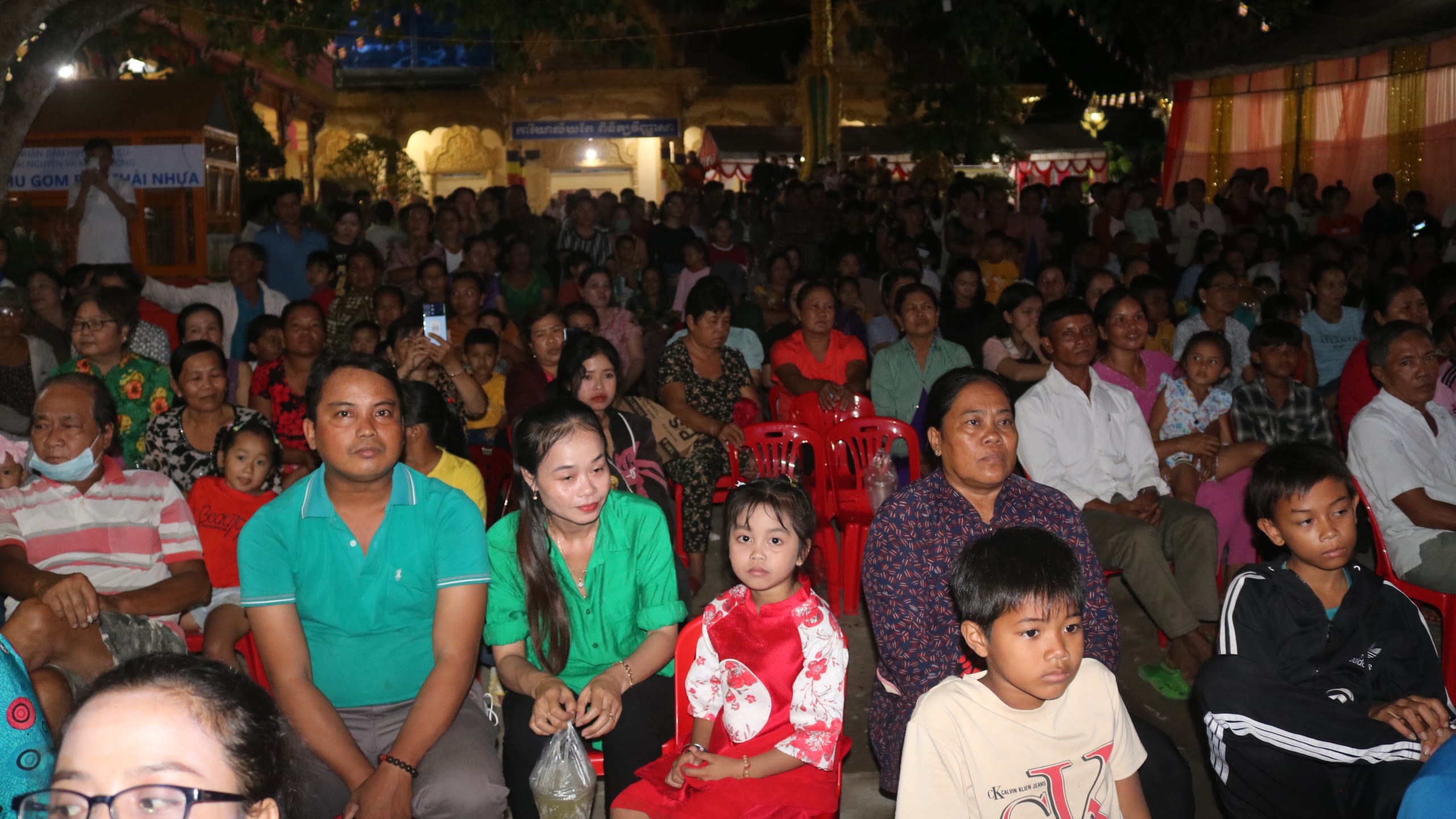 Đông đảo khán giả người Khmer đến chùa Xoài Xiêm, xã Ngãi Xuyên, huyện Trà Cú xem Dù kê.