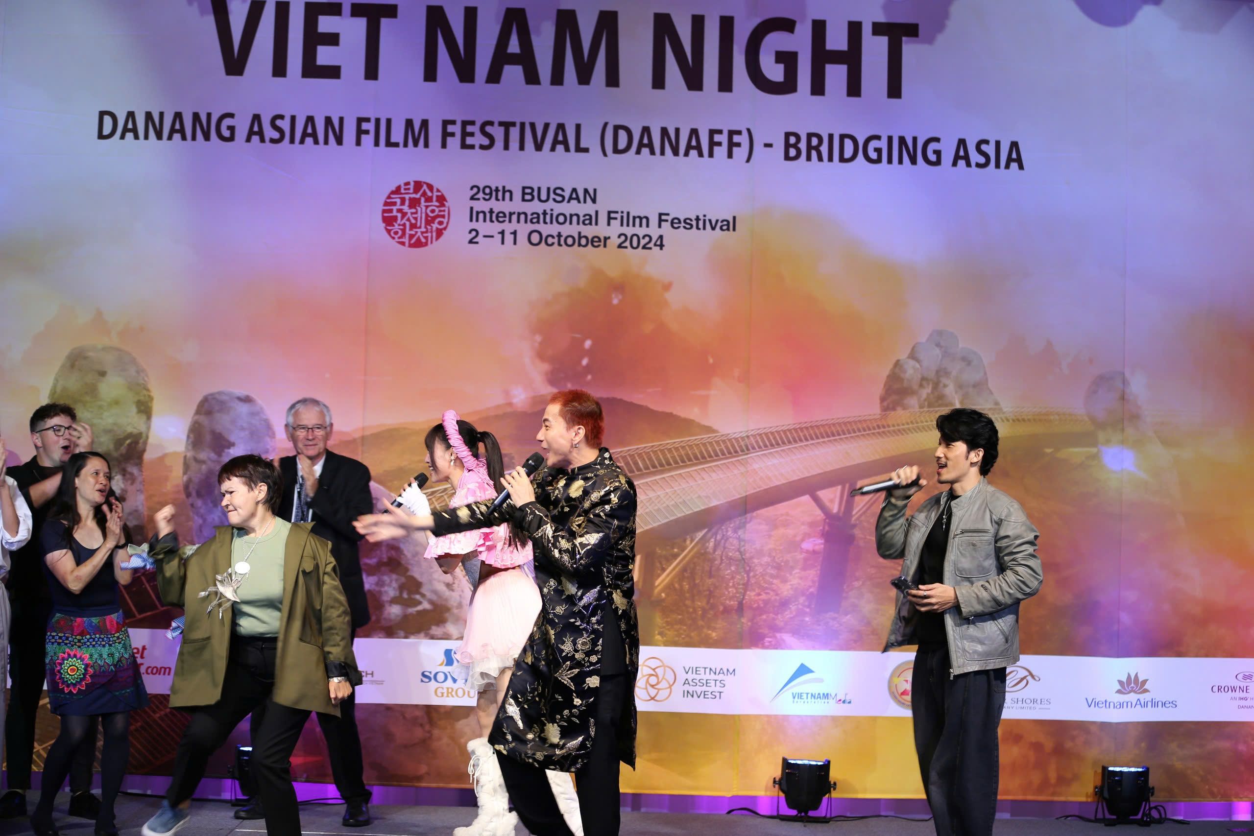 Đoàn Việt Nam tại đêm quảng bá Việt Nam ở Liên hoan phim Busan.
