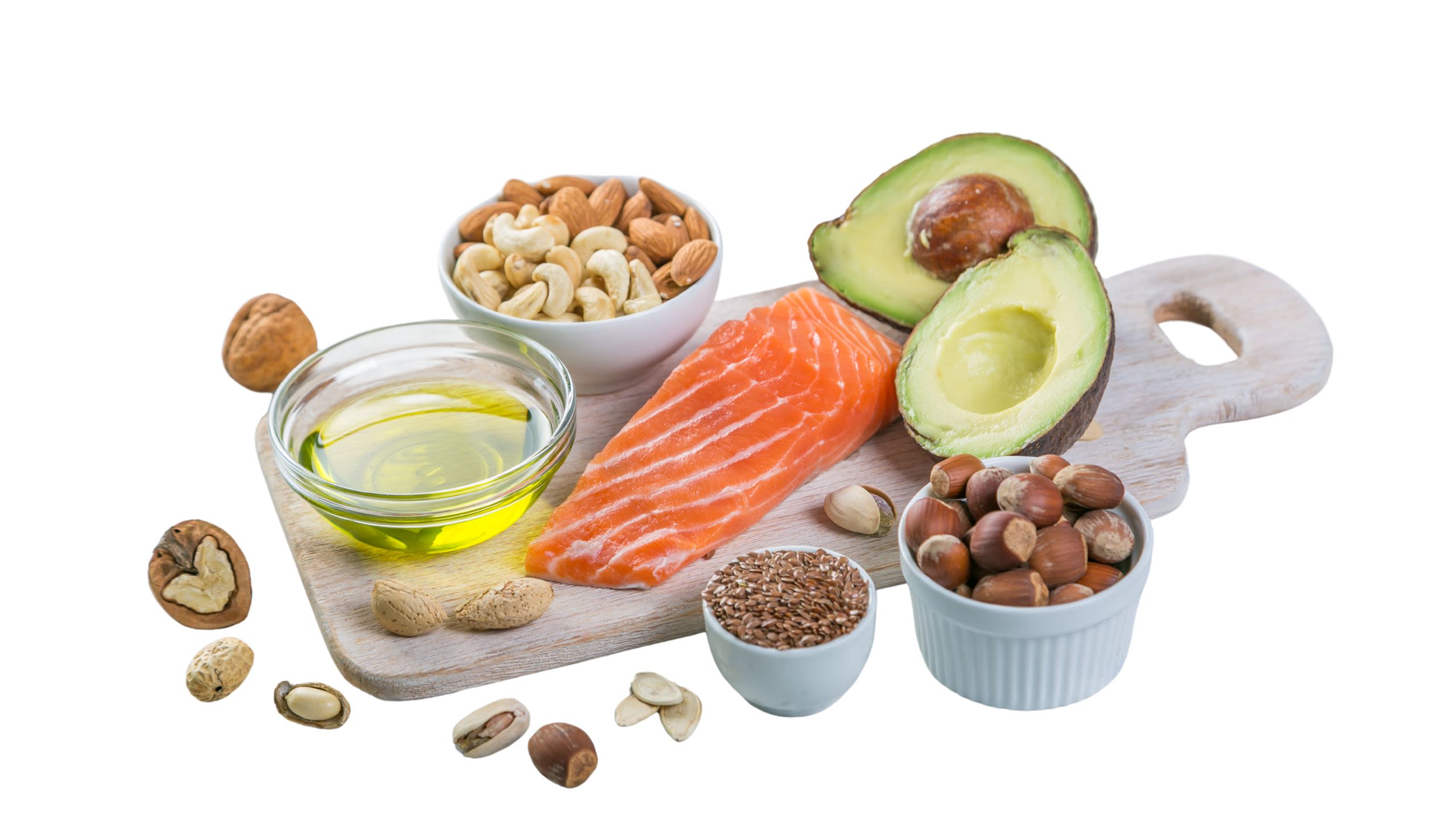 4. Chất béo tốt: các loại chất béo lành mạnh từ cá hồi, hạt chia, hạnh nhân,... cung cấp acid béo omega - 3, một dạng chất béo quan trọng giúp giảm viêm và hỗ trợ sức khỏe gan.