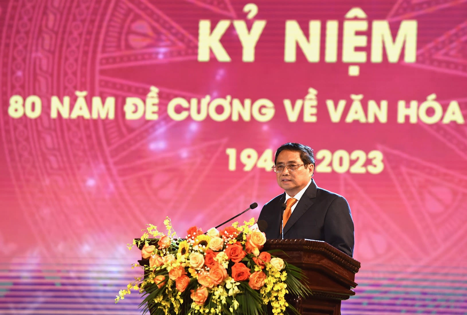 Tối 28/2, tại Nhà hát Lớn Hà Nội, Bộ Văn hóa, Thể thao và Du lịch chủ trì, phối hợp Ban Tuyên giáo Trung ương, Đài Truyền hình Việt Nam và các cơ quan liên quan tổ chức Lễ kỷ niệm và chương trình nghệ thuật đặc biệt kỷ niệm 80 năm ra đời Đề cương văn hóa Việt Nam (1943-2023) với chủ đề: “Đề cương về Văn hóa Việt Nam - Những dấu ấn lịch sử”. Thủ tướng Chính phủ Phạm Minh Chính dự và phát biểu tại buổi lễ. Báo Nhân Dân trân trọng giới thiệu toàn văn bài phát biểu của Thủ tướng Chính phủ Phạm Minh Chính.
