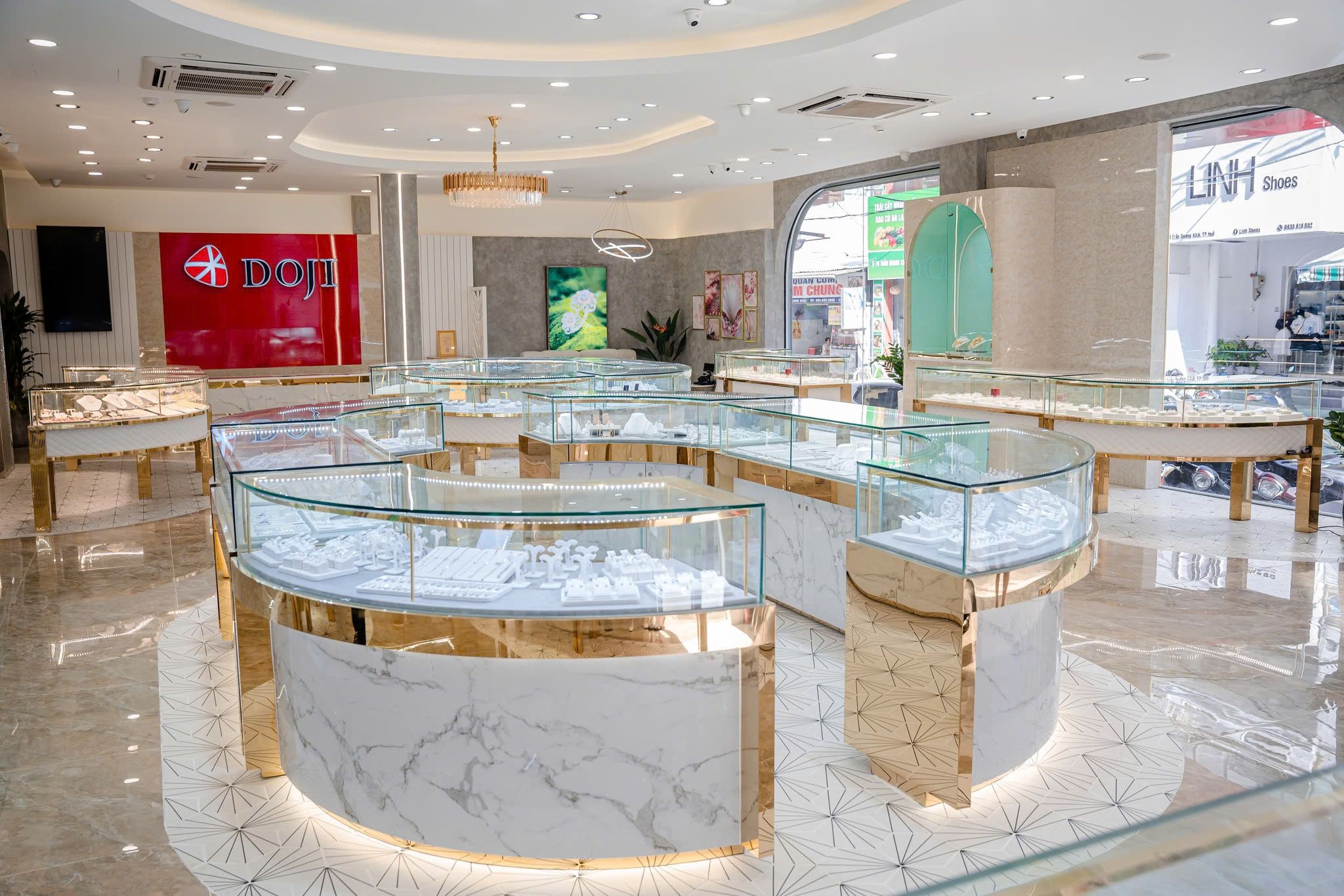 Năm 2024, DOJI tiến hành nâng cấp hệ thống cửa hàng theo mô hình mới, với thiết kế hiện đại, đi theo xu hướng của các trung tâm trang sức thế giới. Không gian trưng bày được tối ưu với kệ, tủ và quầy bố trí hợp lý, giúp khách hàng chiêm ngưỡng sản phẩm trang sức từ nhiều góc độ khác nhau.