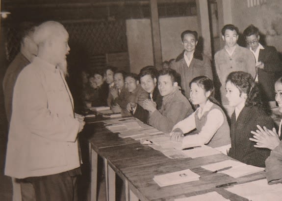 Chủ tịch Hồ Chí Minh thăm lớp học văn hóa buổi tối của công nhân Nhà máy Ô tô 1/5 (tháng 12/1963).