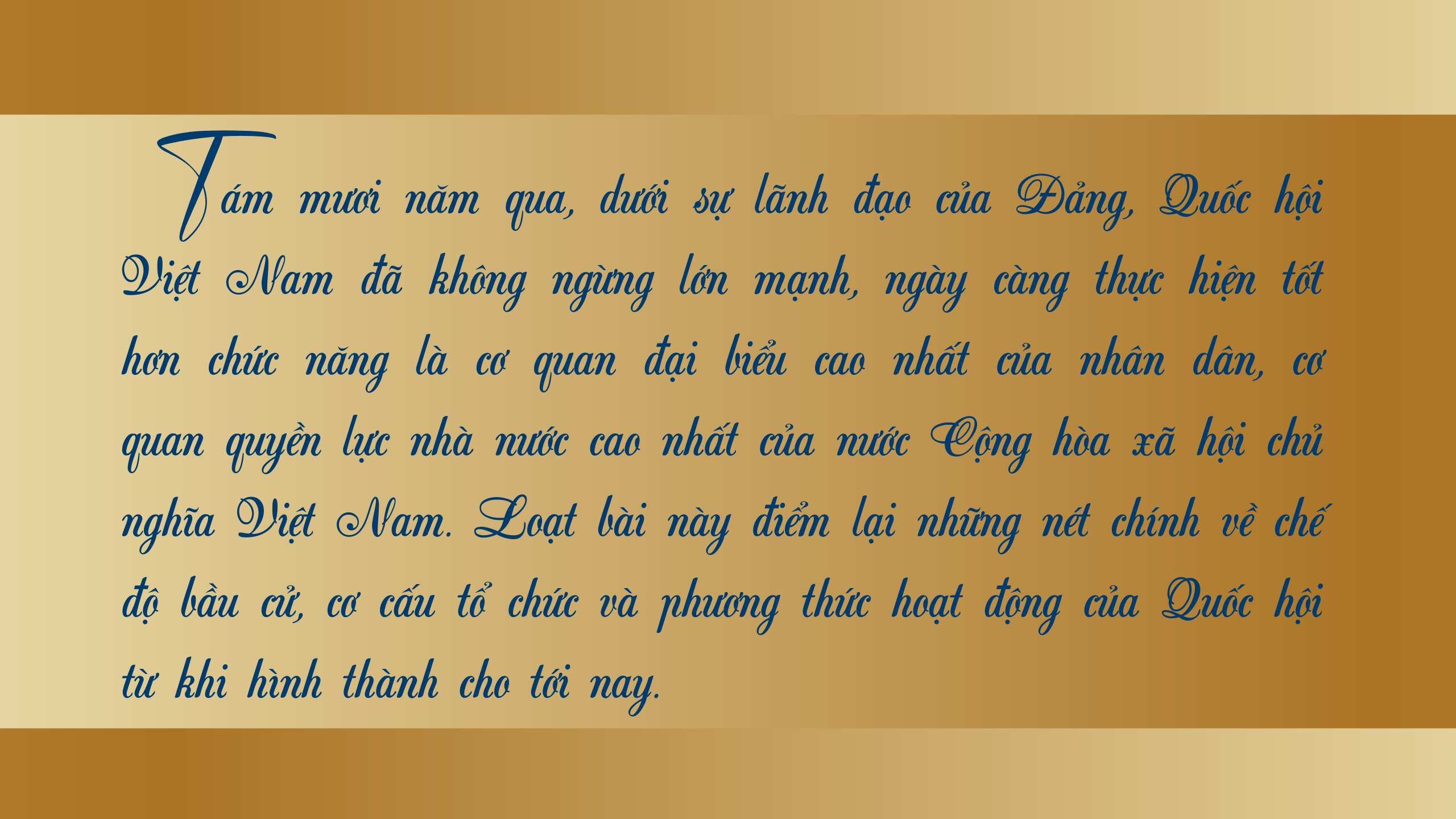 Giai đoạn 1946-1960 đánh dấu bước hình thành và phát triển đầu tiên của Quốc hội Việt Nam trong bối cảnh đất nước tiến hành đồng thời hai nhiệm vụ kháng chiến và kiến quốc. Trong giai đoạn này, chế độ bầu cử, cơ cấu tổ chức và phương thức hoạt động của Quốc hội từng bước được xác lập, hoàn thiện, tạo nền tảng cho việc thực hiện quyền lực nhà nước thuộc về Nhân dân.