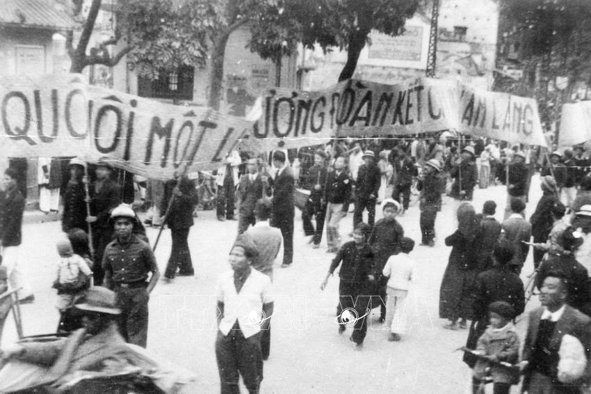 Người dân đón mừng Chủ tịch Hồ Chí Minh và các vị được giới thiệu ứng cử đại biểu Quốc hội tại Hà Nội ngày 5/1/1946.