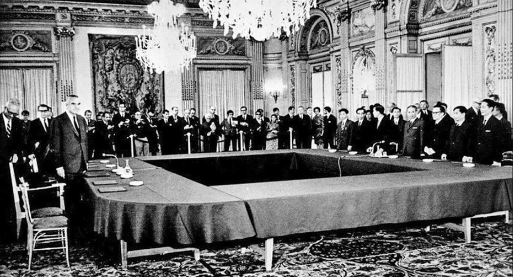 Sau đợt 1 cuộc Tổng tiến công và nổi dậy Mậu Thân, ngày 31/3/1978, Mỹ phải đơn phương tuyên bố hạn chế ném bom phá hoại miền bắc và chính thức gợi ý về một giải pháp ngoại giao, đàm phán với Chính phủ Việt Nam Dân chủ Cộng hòa. Ngày 31/5/1968, phiên họp đầu tiên ở cấp Bộ trưởng được khai mạc tại Paris (ảnh), mở đầu cuộc đàm phán lịch sử kéo dài hơn 4 năm. (Ảnh: TTXVN)