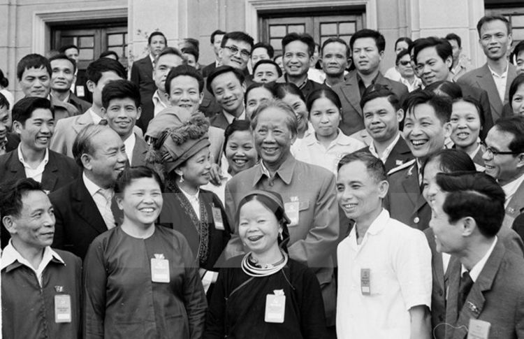 Tổng Bí thư Lê Duẩn với các đại biểu dự Đại hội Đảng toàn quốc lần thứ V tại Hà Nội (ngày 29/3/1982). (Ảnh: TTXVN)