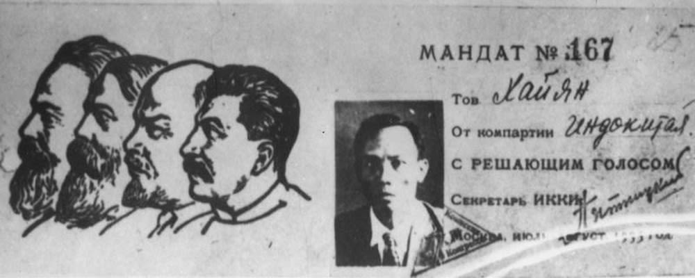 Thẻ đại biểu Đại hội VII Quốc tế Cộng sản của đồng chí Lê Hồng Phong. (Ảnh: TTXVN)