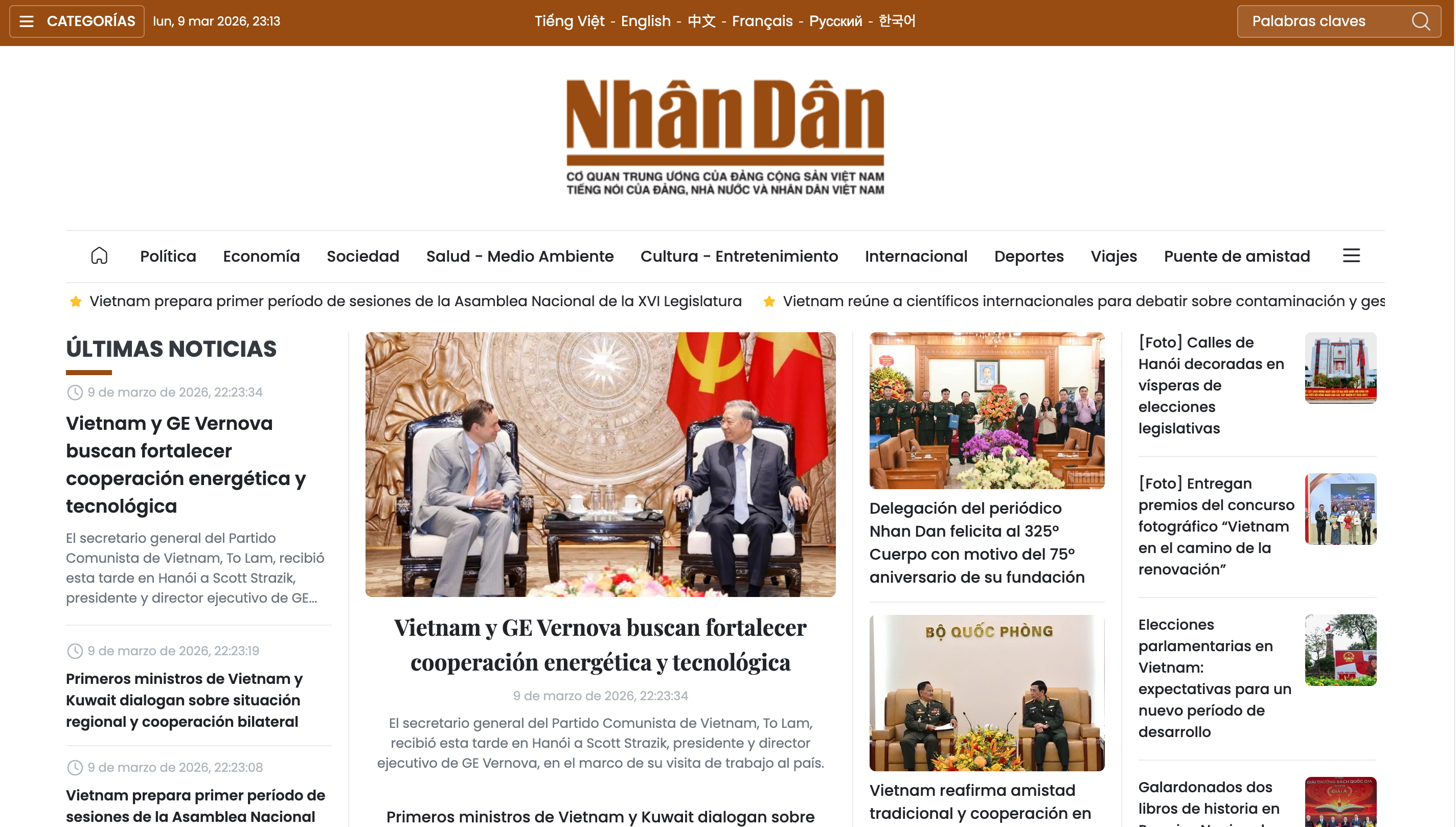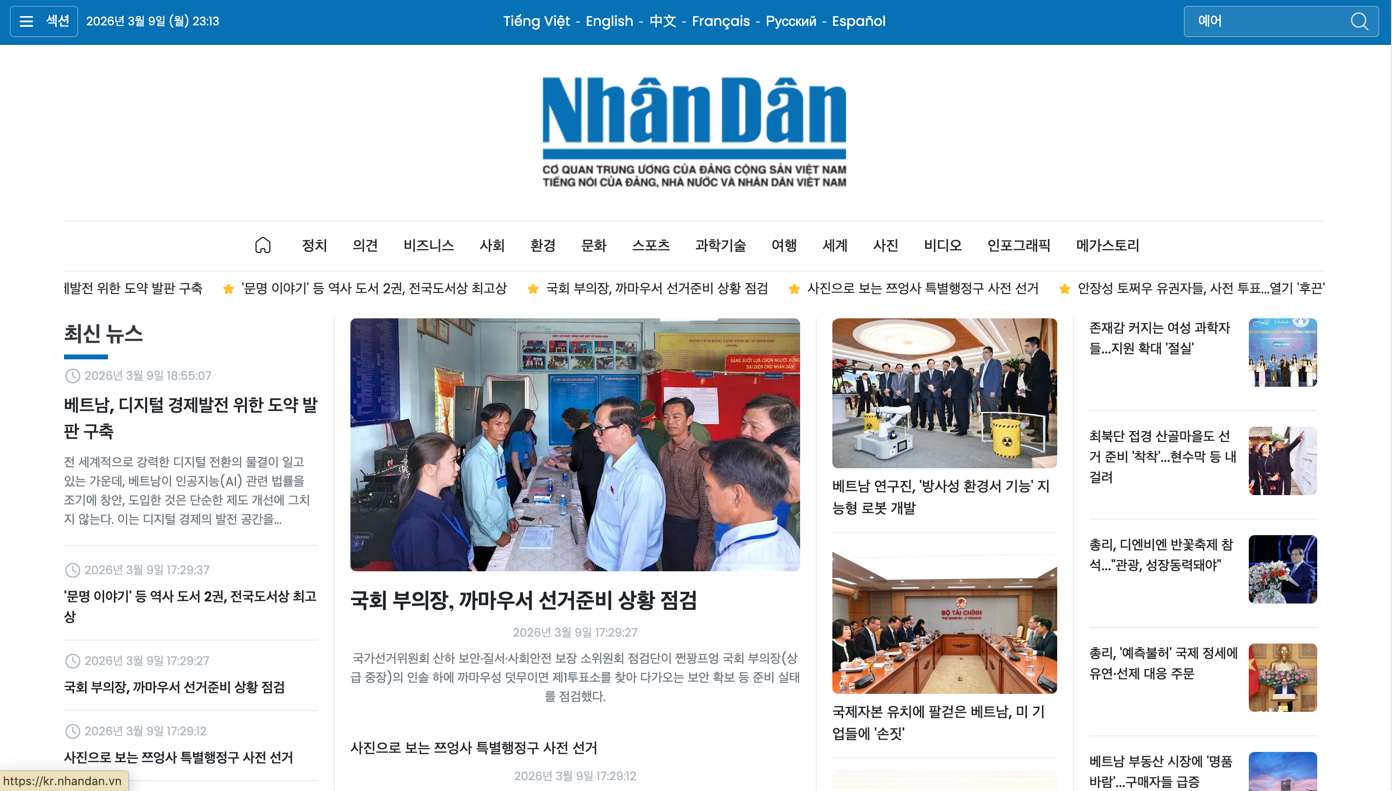 Một điểm đáng chú ý khác là báo Nhân Dân điện tử hiện có nhiều phiên bản ngôn ngữ song hành với phiên bản tiếng Việt, gồm tiếng Anh, tiếng Pháp, tiếng Trung Quốc, tiếng Nga, tiếng Tây Ban Nha và mới đây nhất là phiên bản tiếng Hàn Quốc chính thức ra mắt vào tháng 12/2025. Những phiên bản này góp phần mở rộng phạm vi lan tỏa của thông tin chính thống từ báo Nhân Dân, đưa hình ảnh và tiếng nói của Việt Nam đến với bạn bè quốc tế.