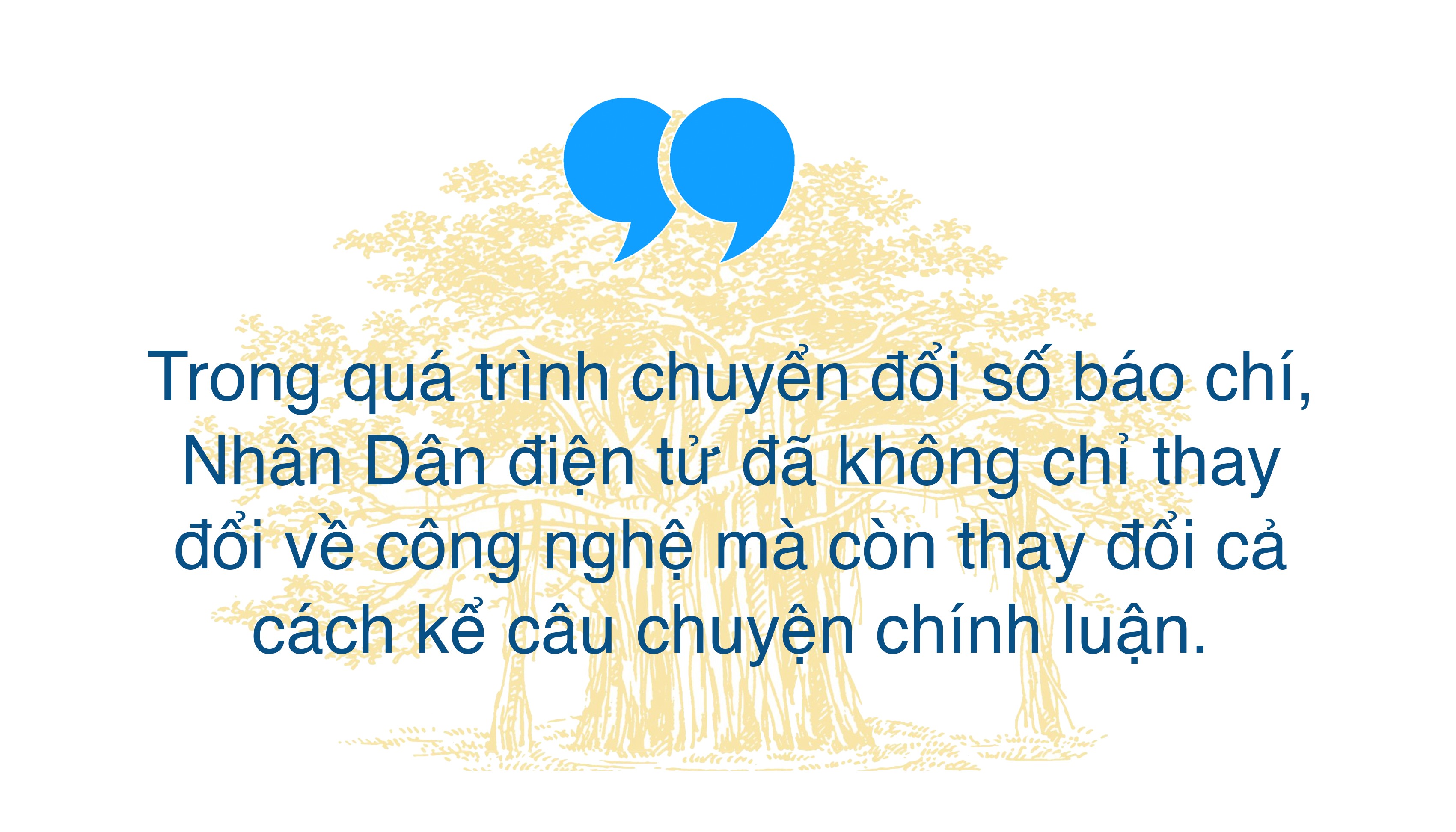 Về công nghệ số, Báo Nhân Dân, trong đó nòng cốt là Nhân Dân điện tử đã có bước chuyển rất mạnh mẽ. Điều này được thể hiện rõ qua các trải nghiệm thực tế. Cách các anh chị em đồng nghiệp sử dụng hữu hiệu trí tuệ nhân tạo để cá nhân hóa nội dung hay phát triển sinh động loại hình Podcast đã đưa thông tin của Đảng đến gần hơn với độc giả trẻ — một đối tượng mà từ trước đến nay có lẽ đọc Báo Nhân Dân chưa nhiều.