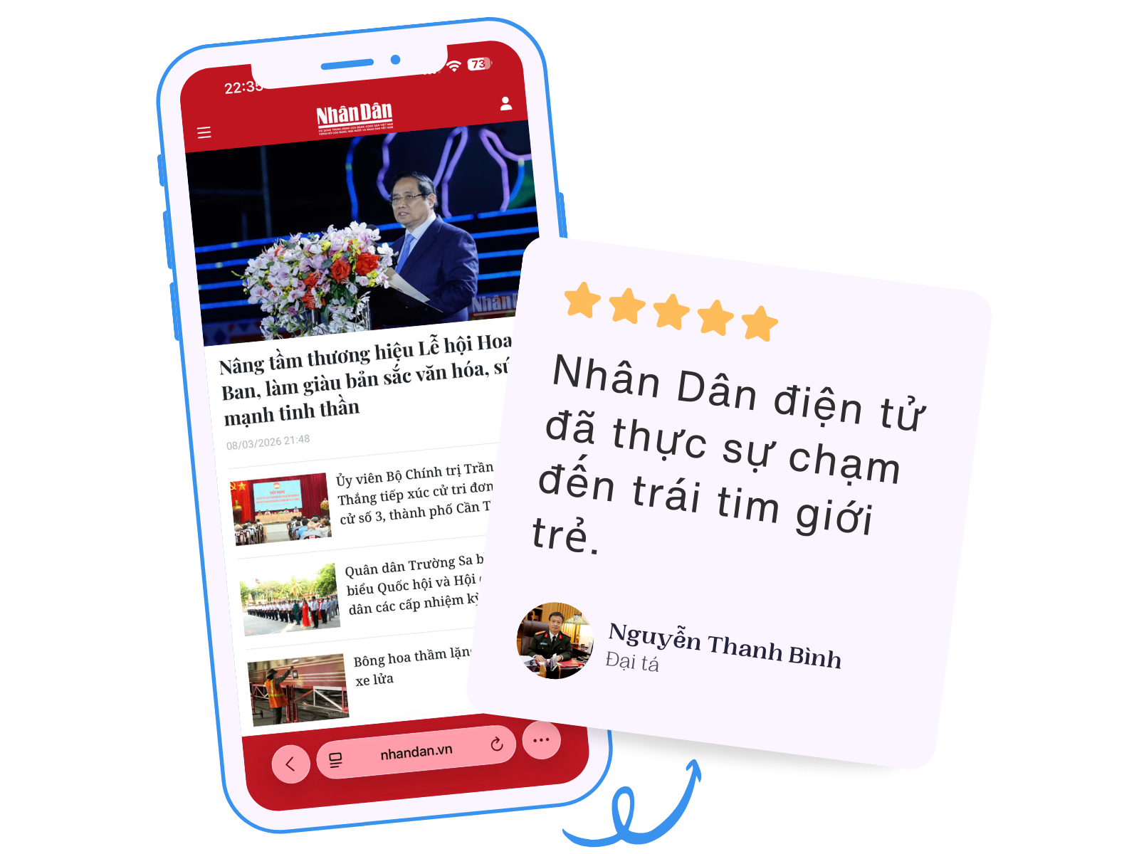 Nhân Dân điện tử có sự cân bằng giữa nội dung chính thống, chuẩn mực với hình thức hiện đại. Các bạn vẫn giữ chiều sâu và tính định hướng nhưng trình bày gần gũi, hấp dẫn, phù hợp thói quen tiếp nhận thông tin của độc giả trong thời đại số. Chính sự đổi mới đó khiến tôi có thói quen truy cập Báo Nhân Dân điện tử mỗi ngày.