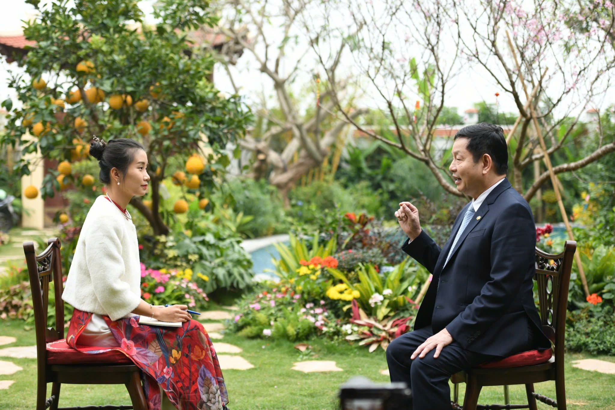 Nữ phóng viên trẻ của Nhân Dân điện tử trong cuộc phỏng vấn ông Trương Gia Bình, Chủ tịch HĐQT Tập đoàn FPT tại nhà riêng.