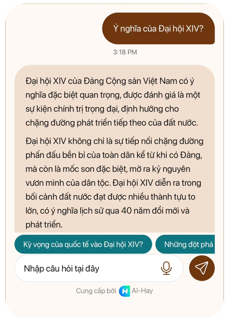 Đặc biệt, sản phẩm Chatbot trên trang Đảng Cộng sản-Đại hội XIV (daihoidangtoanquoc.vn) giúp độc giả rút ngắn được thời gian tra cứu thông tin.