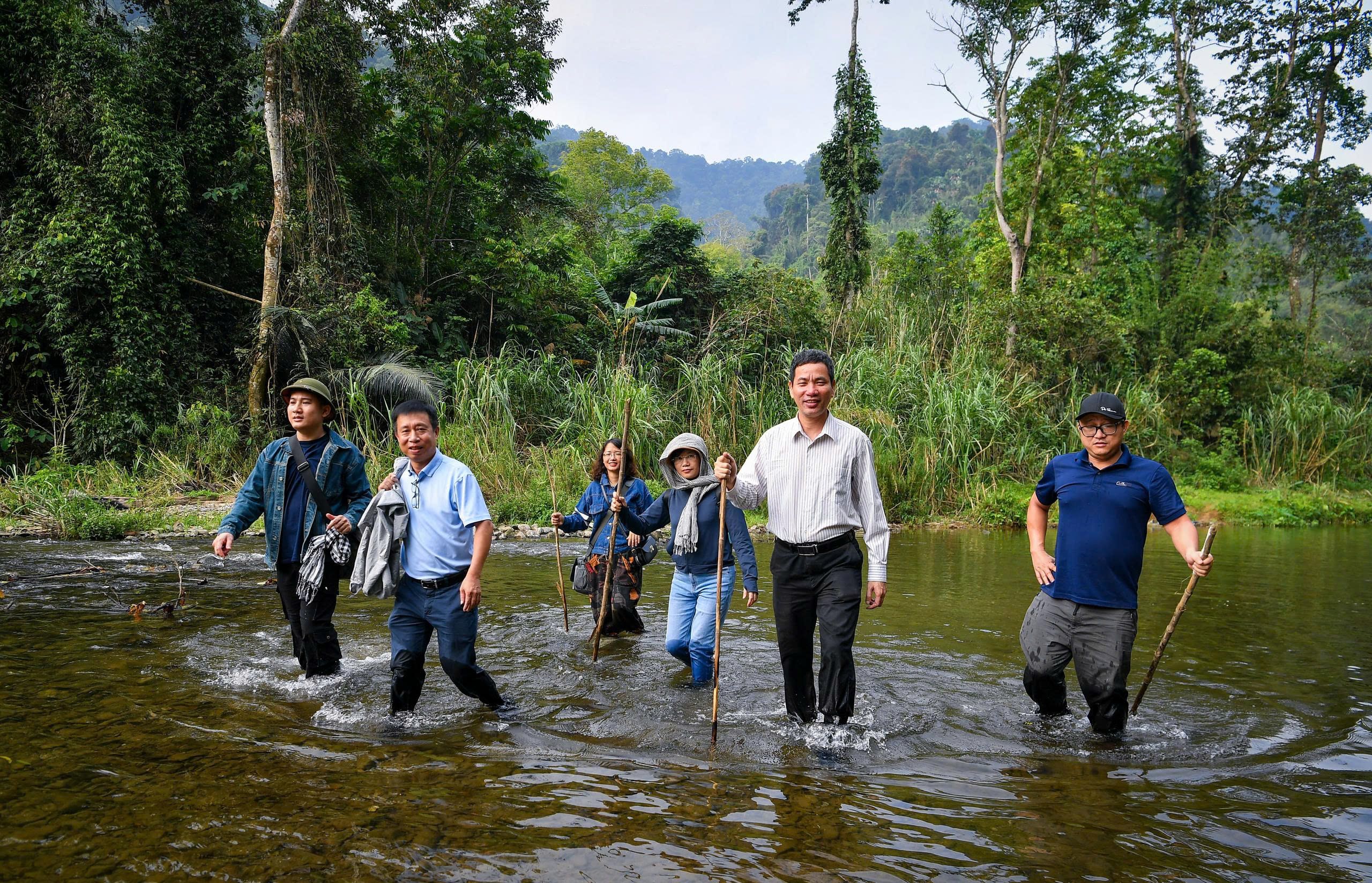 Phóng viên Nhân Dân điện tử lội suối vào rừng Pù Mát, Nghệ An.