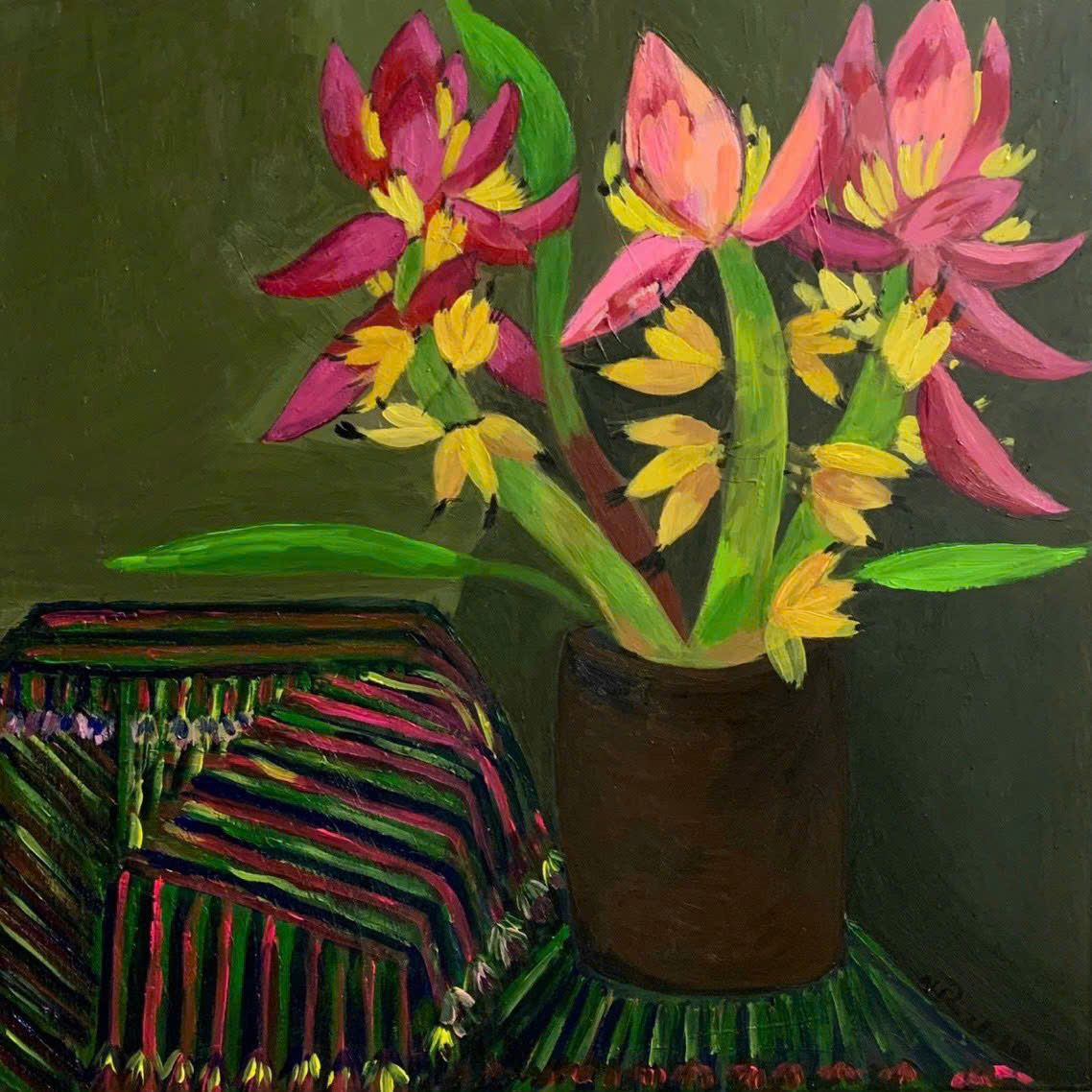 Tác phẩm: "Hoa lúa". Kích thước: 40x40. Chất liệu: Acrylic trên toan. Sáng tác năm 2019.