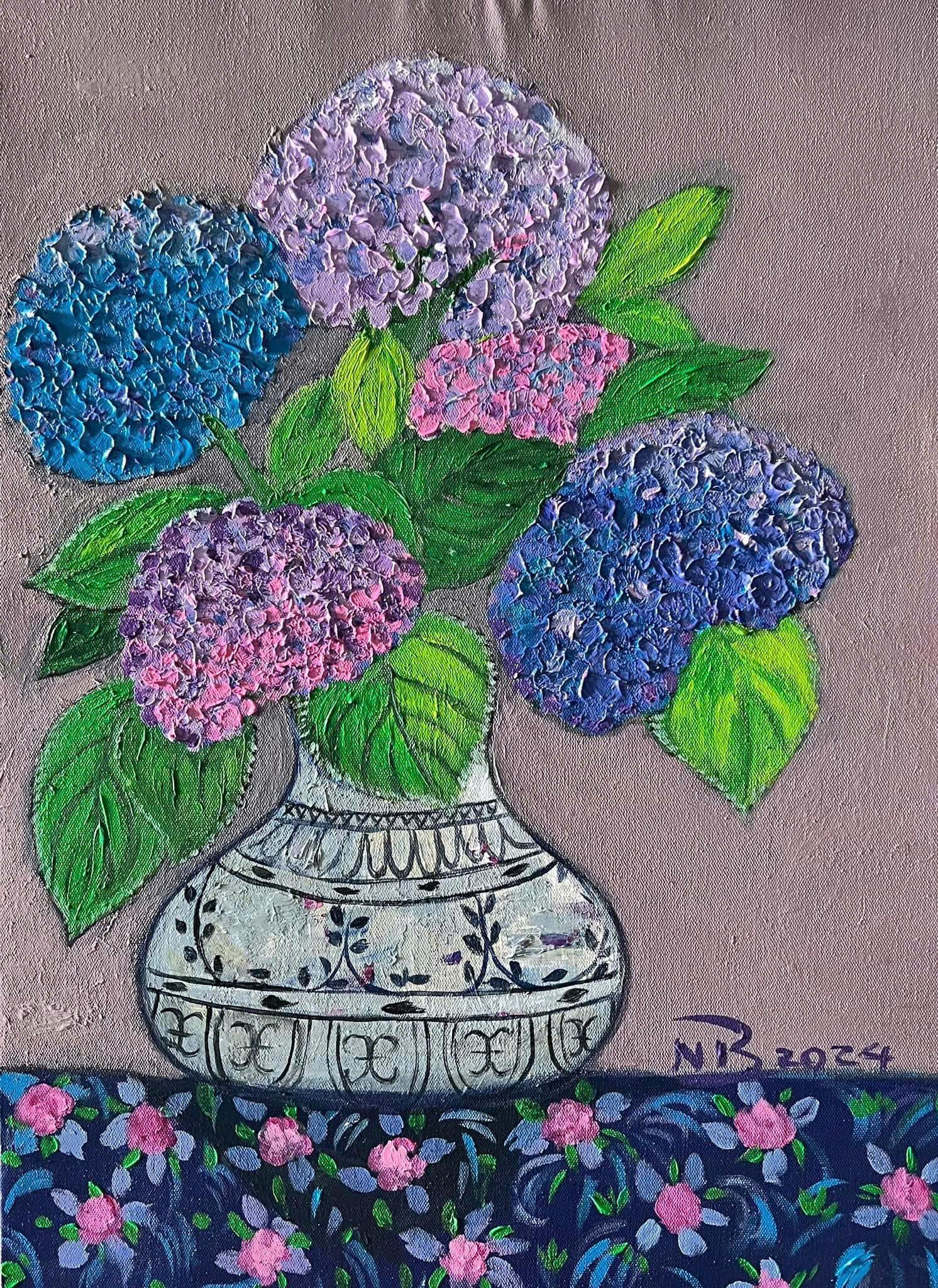 Tác phẩm: "Cẩm Tú cầu". Kích thước: 60x80. Chất liệu: Acrylic trên toan.
