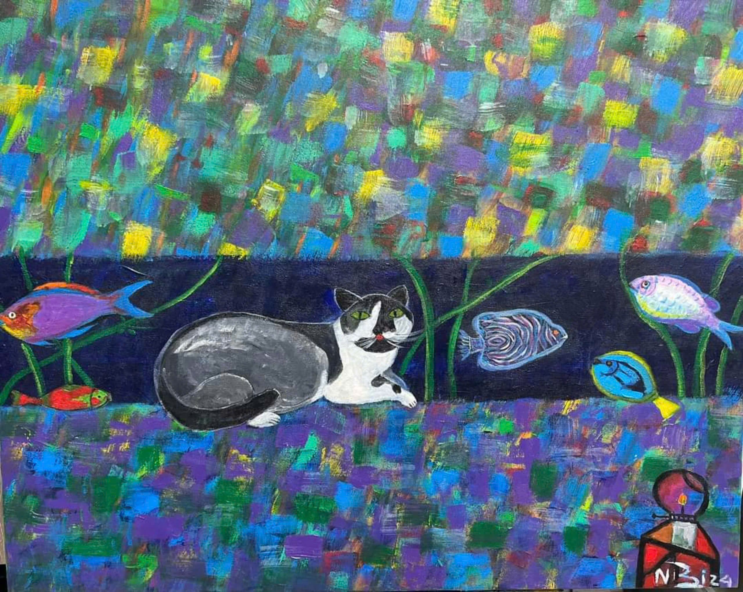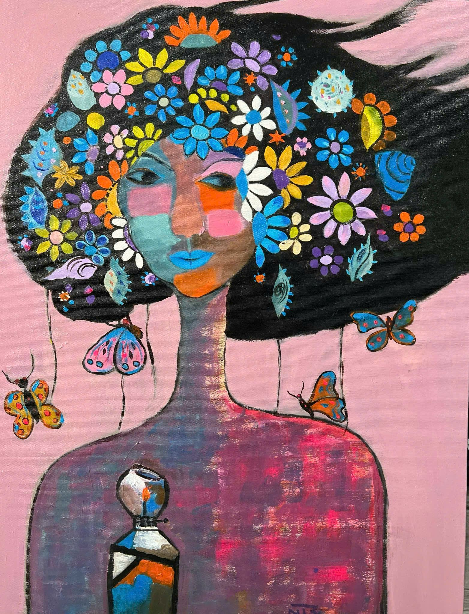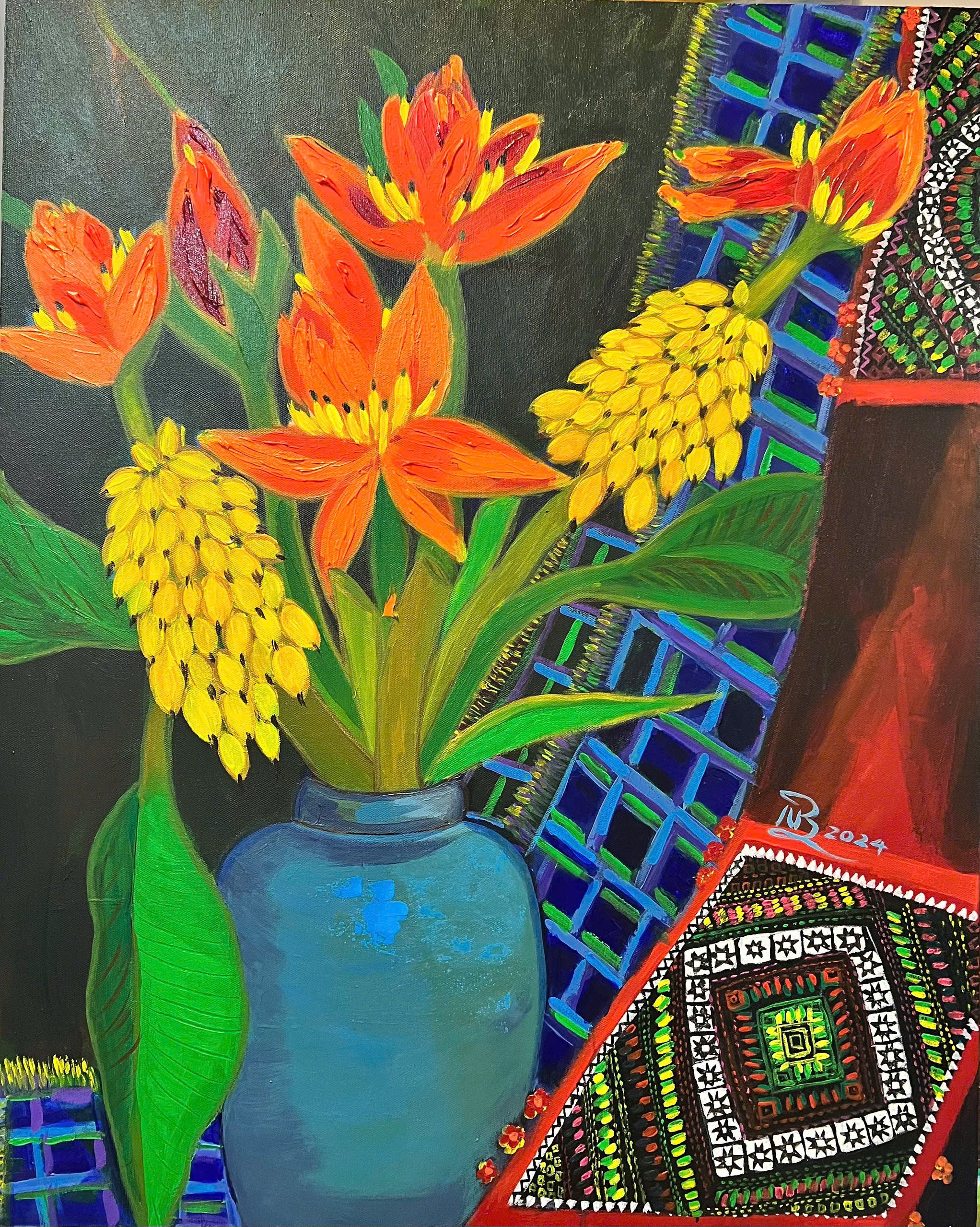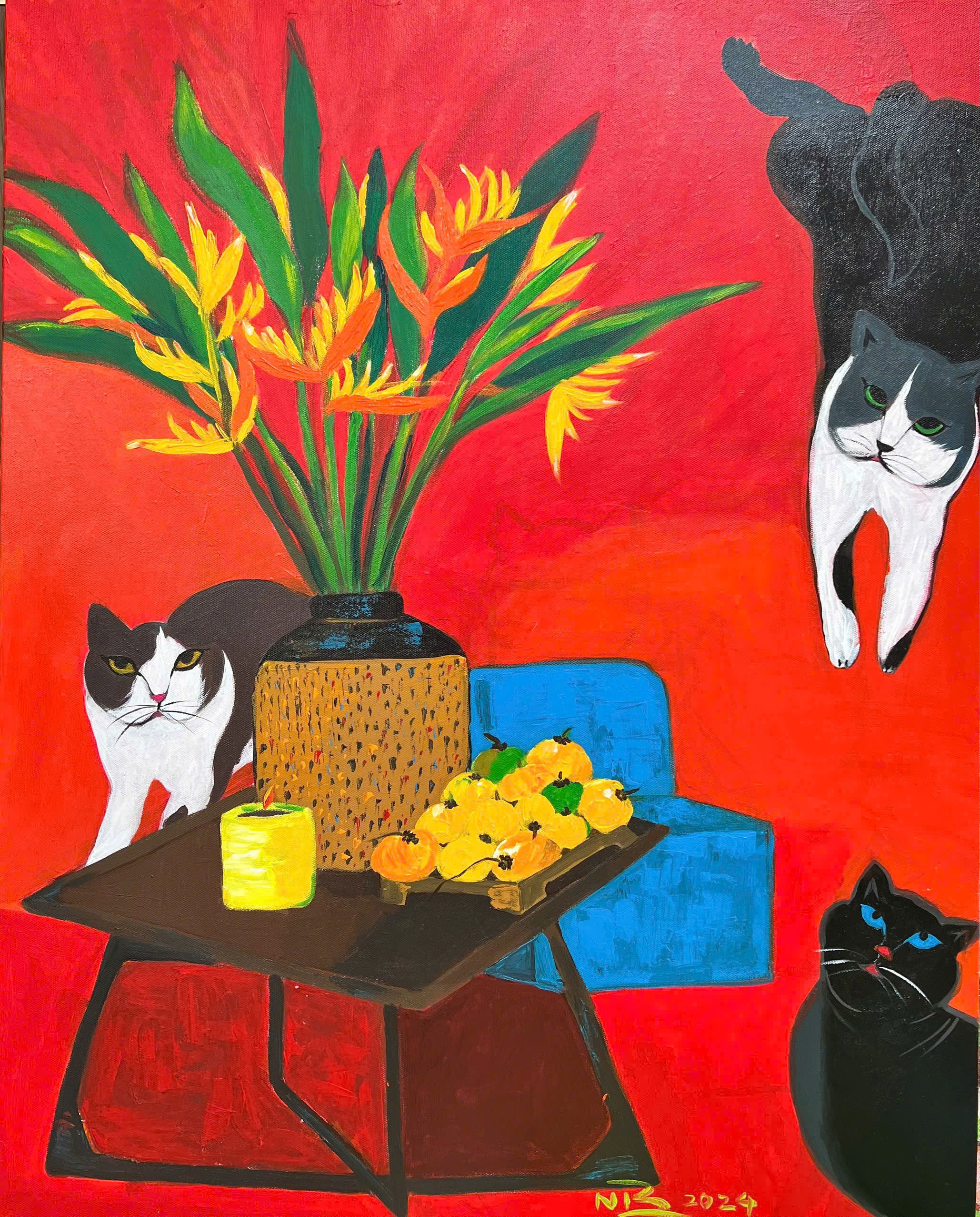 Tác phẩm: "Bạn tôi". Kích thước: 70x80. Chất liệu: Acrylic trên toan. Sáng tác năm 2023.