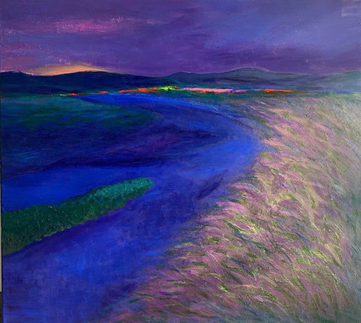 Tác phẩm: "Bình minh tím". Kích thước: 80x100. Chất liệu: Acrylic trên toan. Sáng tác năm 2020.