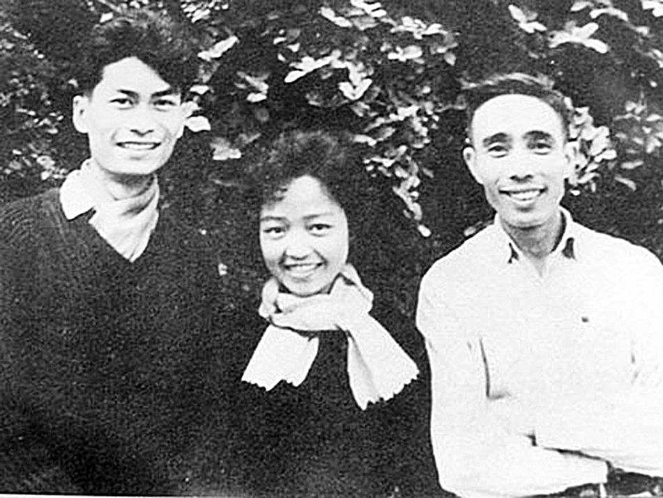 Nhà thơ Lê Anh Xuân (bìa trái), chị Loan - vợ nhà văn Anh Đức và nhạc sĩ Phan Huỳnh Điểu tại Hà Nội năm 1964. (Ảnh tư liệu)
