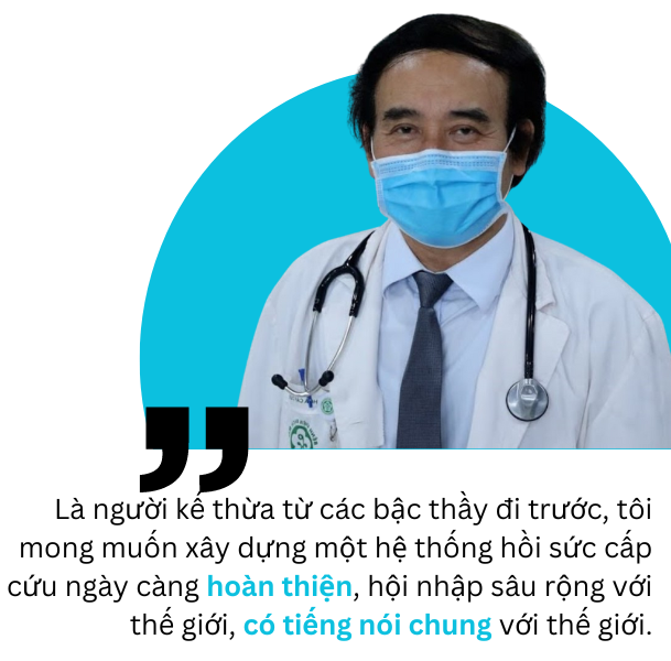 Năm 2008, Bộ Y tế đã ban hành quy chế cấp cứu, hồi sức tích cực và chống độc, đây là một trong những hành lang pháp lý quan trọng cho việc xây dựng và phát triển hệ thống hồi sức cấp cứu. Tôi chỉ mong ước Việt Nam có đủ nguồn lực tài chính, có một cơ sở vật chất tốt, điều kiện trang thiết bị tốt, điều kiện con người tốt để phát triển hệ thống hồi sức cấp cứu như quy chế đã ban hành. Đó cũng là mong ước của các bậc thầy chúng tôi trong việc xây dựng và phát triển hệ thống hồi sức cấp cứu hiện đại đáp ứng nhu cầu chăm sóc sức khỏe nhân dân.