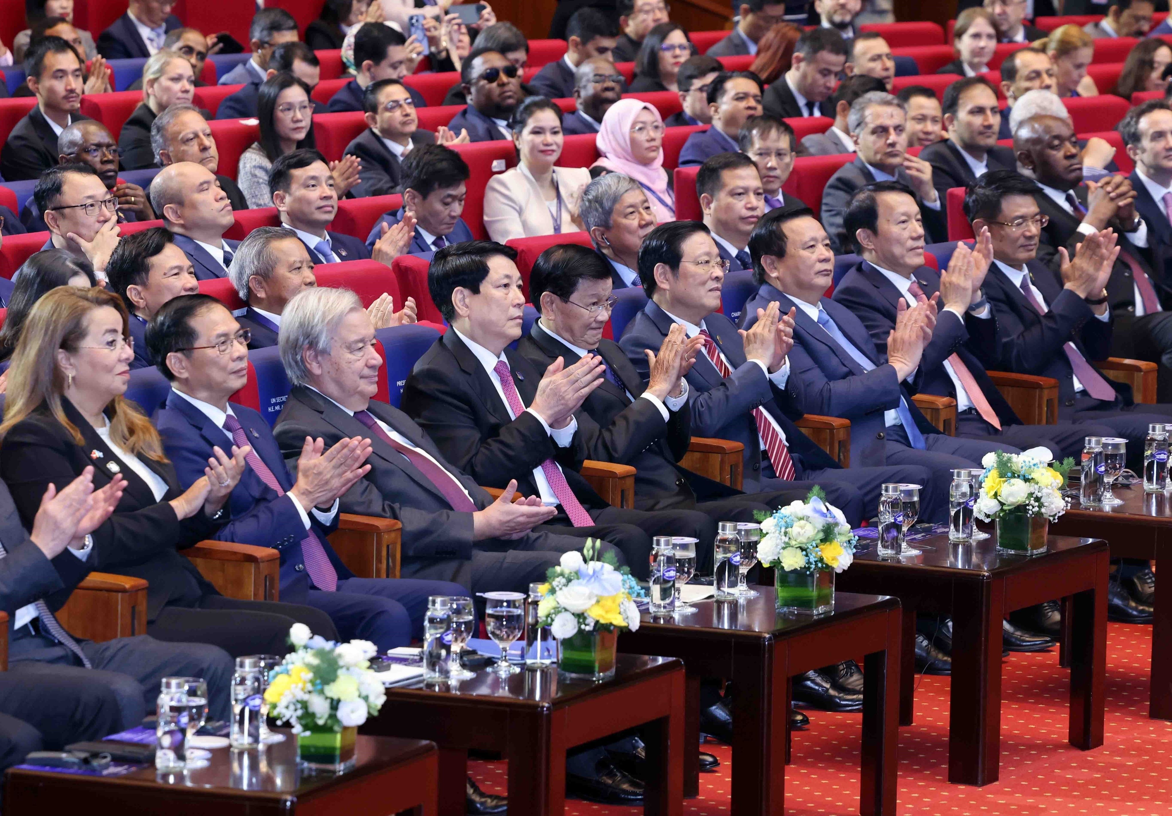 Chủ tịch nước Lương Cường, Tổng Thư ký Liên hợp quốc António Guterres cùng các đại biểu tham dự Lễ mở ký Công ước Hà Nội.