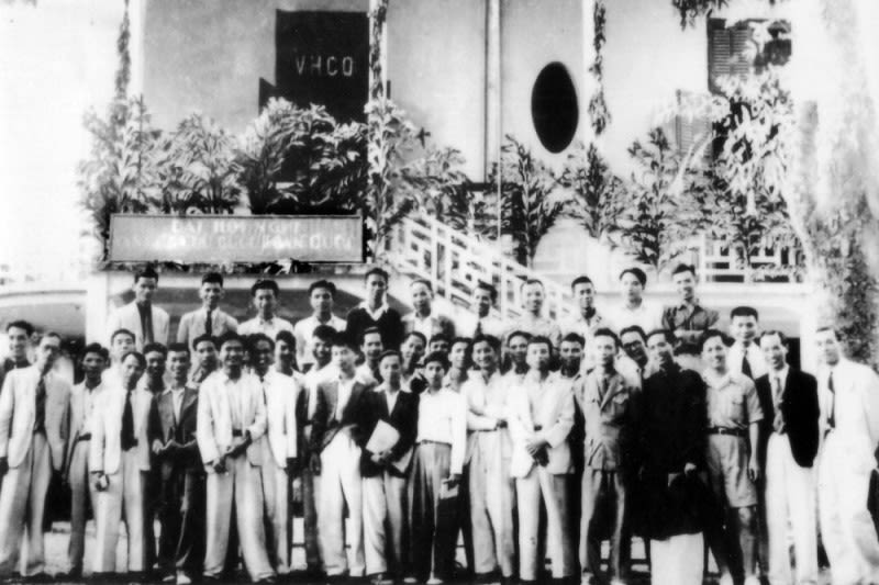 Hội nghị văn hóa lần thứ I ở chiến khu Việt Bắc, năm 1949 (Ngồi hàng đầu, từ trái sang phải: Trường Chinh, Hoàng Quốc Việt, Lê Văn Lương, Trần Huy Liệu). (Ảnh: Bảo tàng Lịch sử quốc gia)