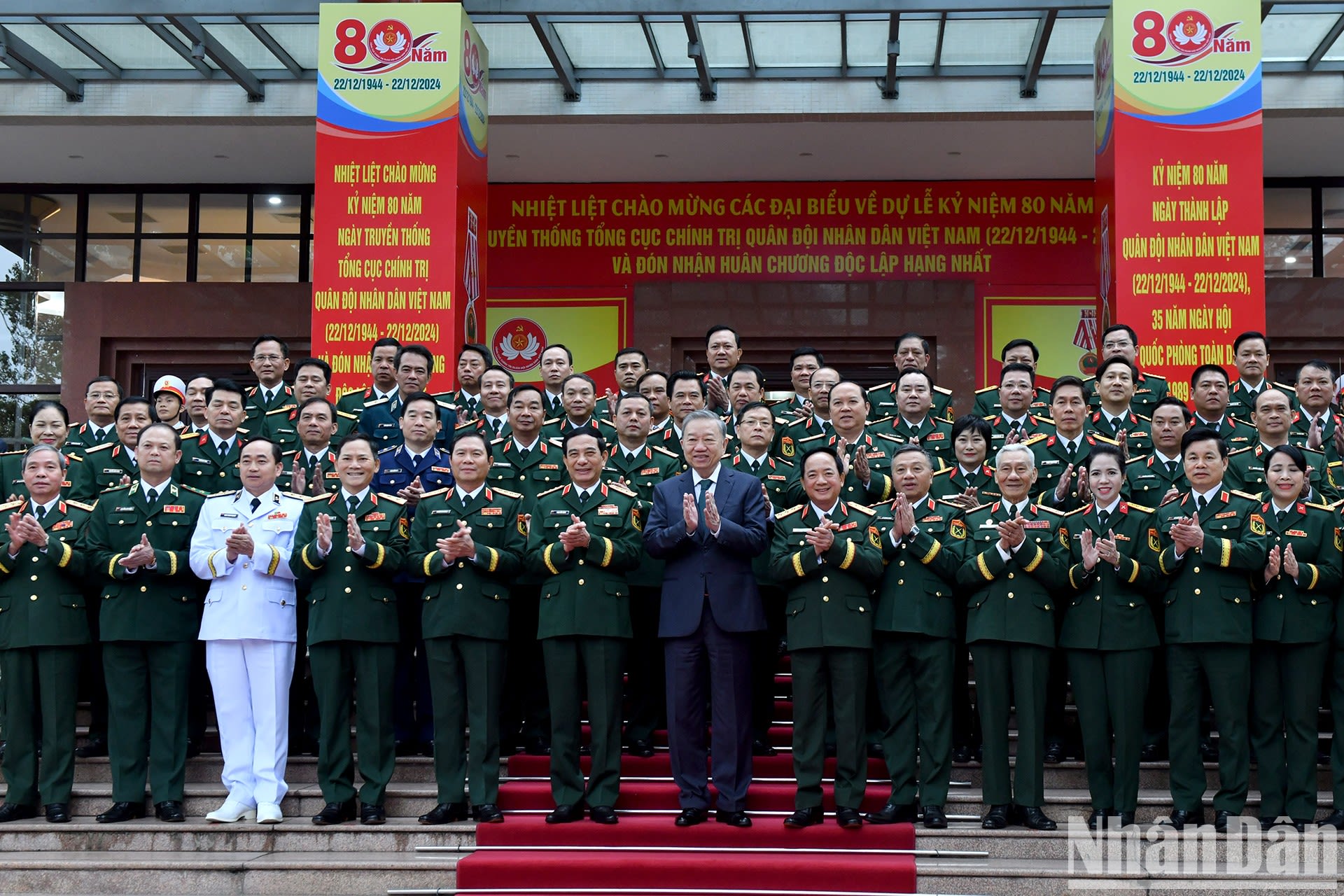 Phấn khởi, tự hào về những chiến công, thành tích xuất sắc Tổng cục Chính trị Quân đội nhân dân Việt Nam đạt được trong 80 năm xây dựng, chiến đấu, trưởng thành và phát triển, chúng ta càng ý thức sâu sắc trách nhiệm vinh quang trên chặng đường cùng toàn Đảng, toàn dân đưa đất nước ta bước vào kỷ nguyên mới - kỷ nguyên vươn mình của dân tộc. Đảng, Nhà nước và nhân dân luôn tin tưởng, dưới sự lãnh đạo, chỉ đạo của Bộ Chính trị, Ban Bí thư và thường xuyên, trực tiếp của Quân ủy Trung ương; sự phối hợp, hiệp đồng, giúp đỡ của các ban, bộ, ngành, đoàn thể Trung ương và các địa phương, của các cơ quan, đơn vị trong và ngoài Quân đội và bạn bè quốc tế, Tổng cục Chính trị Quân đội nhân dân Việt Nam sẽ ngày càng trưởng thành, vững mạnh, không ngừng phát huy truyền thống vẻ vang, hoàn thành xuất sắc mọi nhiệm vụ được giao, xứng đáng với tình cảm đặc biệt và niềm tin yêu của Đảng, Nhà nước và nhân dân.