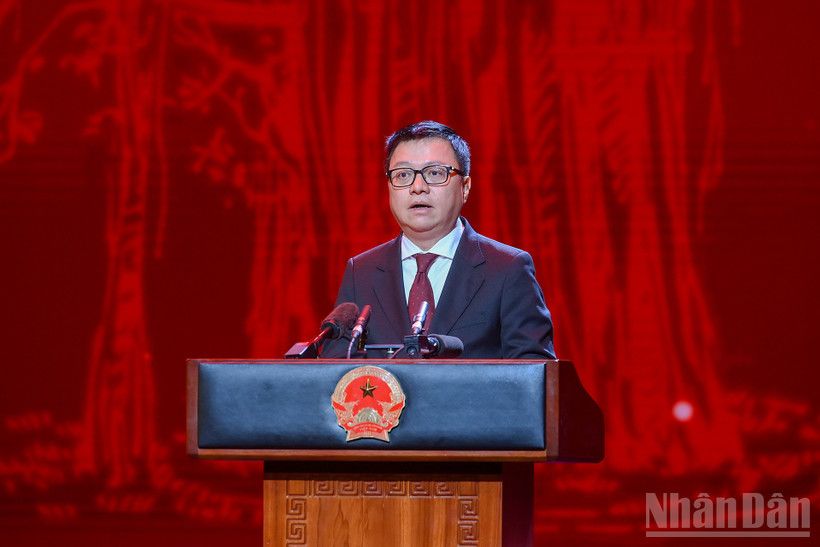 Hôm nay, trong không khí phấn khởi của những ngày đầu Xuân và tinh thần quyết liệt của toàn Đảng, toàn dân và toàn quân ta khẩn trương đưa Nghị quyết Đại hội XIV của Đảng vào cuộc sống, tôi rất vui mừng đến dự Lễ Kỷ niệm 75 năm Ngày Báo Nhân Dân ra số đầu (11/3/1951-11/3/2026) và 80 năm Báo Sự Thật. Thay mặt lãnh đạo Đảng, Nhà nước, tôi thân ái gửi tới các đồng chí đại biểu, các đồng chí lãnh đạo, các nhà báo lão thành và toàn thể các thế hệ người làm Báo Nhân Dân qua các thời kỳ những tình cảm trân trọng, thân thiết và lời chúc mừng tốt đẹp nhất.