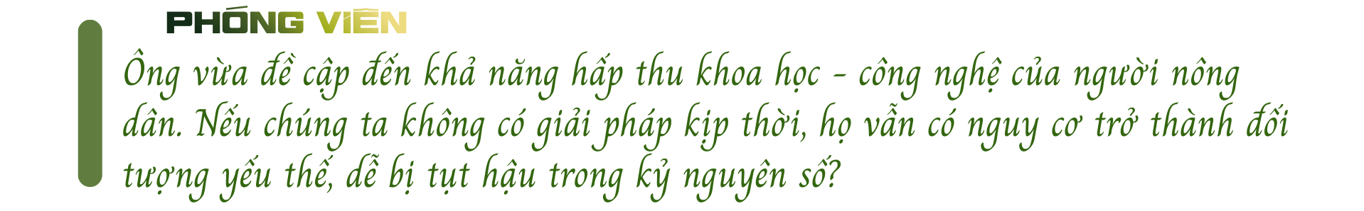 Tôi cho rằng, để tháo gỡ căn cơ những rào cản này, cần đặc biệt chú trọng nâng cao năng lực của người nông dân theo hướng tri thức hóa và chuyên nghiệp hóa. Nông dân cần được trang bị kiến thức, kỹ năng và tư duy để có khả năng hấp thu khoa học - công nghệ, tham gia chuyển đổi số, từ đó tạo ra giá trị gia tăng cao hơn cho nông sản và nâng cao năng suất lao động trong khu vực nông nghiệp.