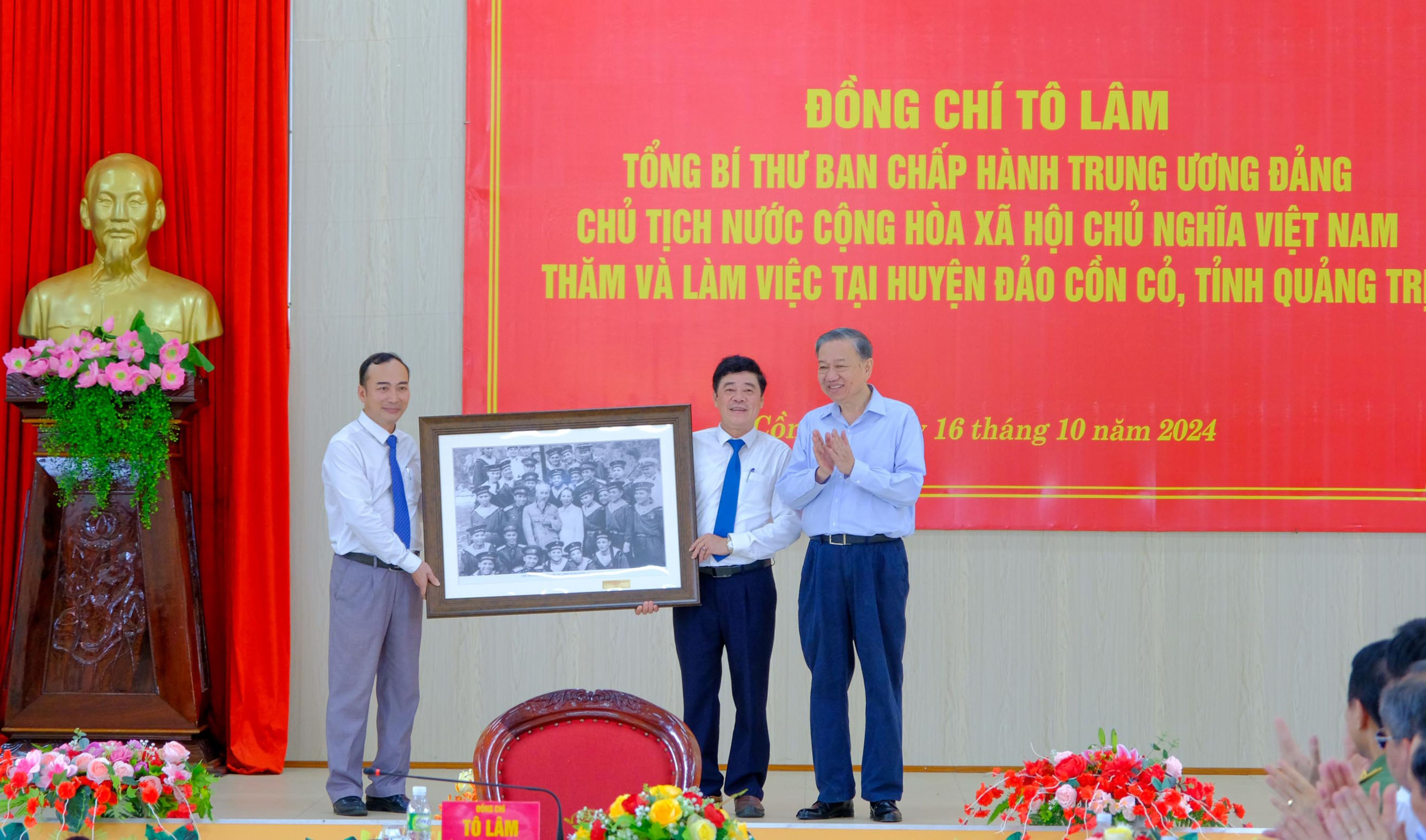 Tổng Bí thư Tô Lâm trao quà tặng huyện đảo Cồn Cỏ.