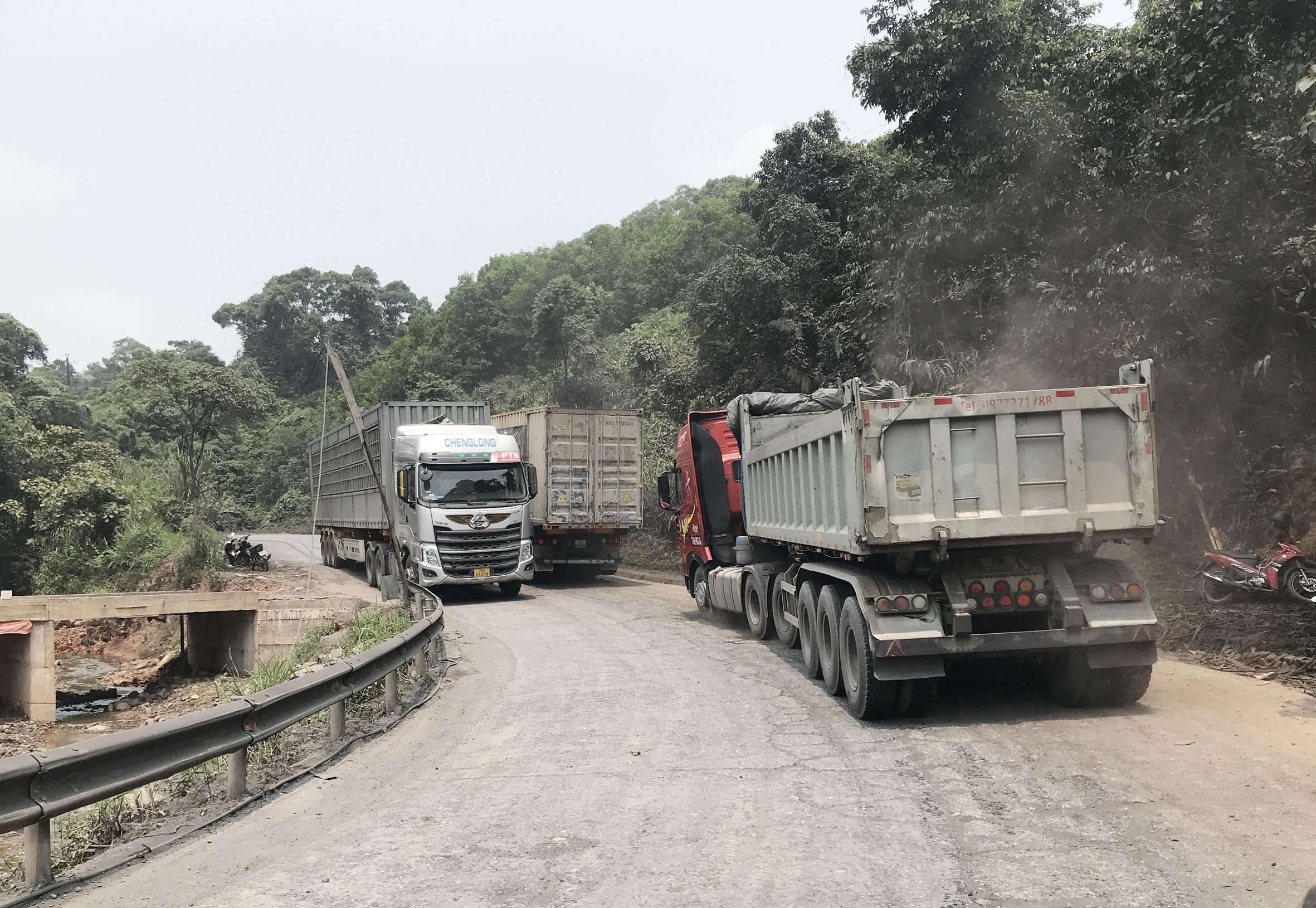 Các phương tiện chở than đá từ Lào qua cửa khẩu quốc tế La Lay về Việt Nam qua hành lang kinh tế đông tây thứ hai, Mỹ Thủy-La Lay.