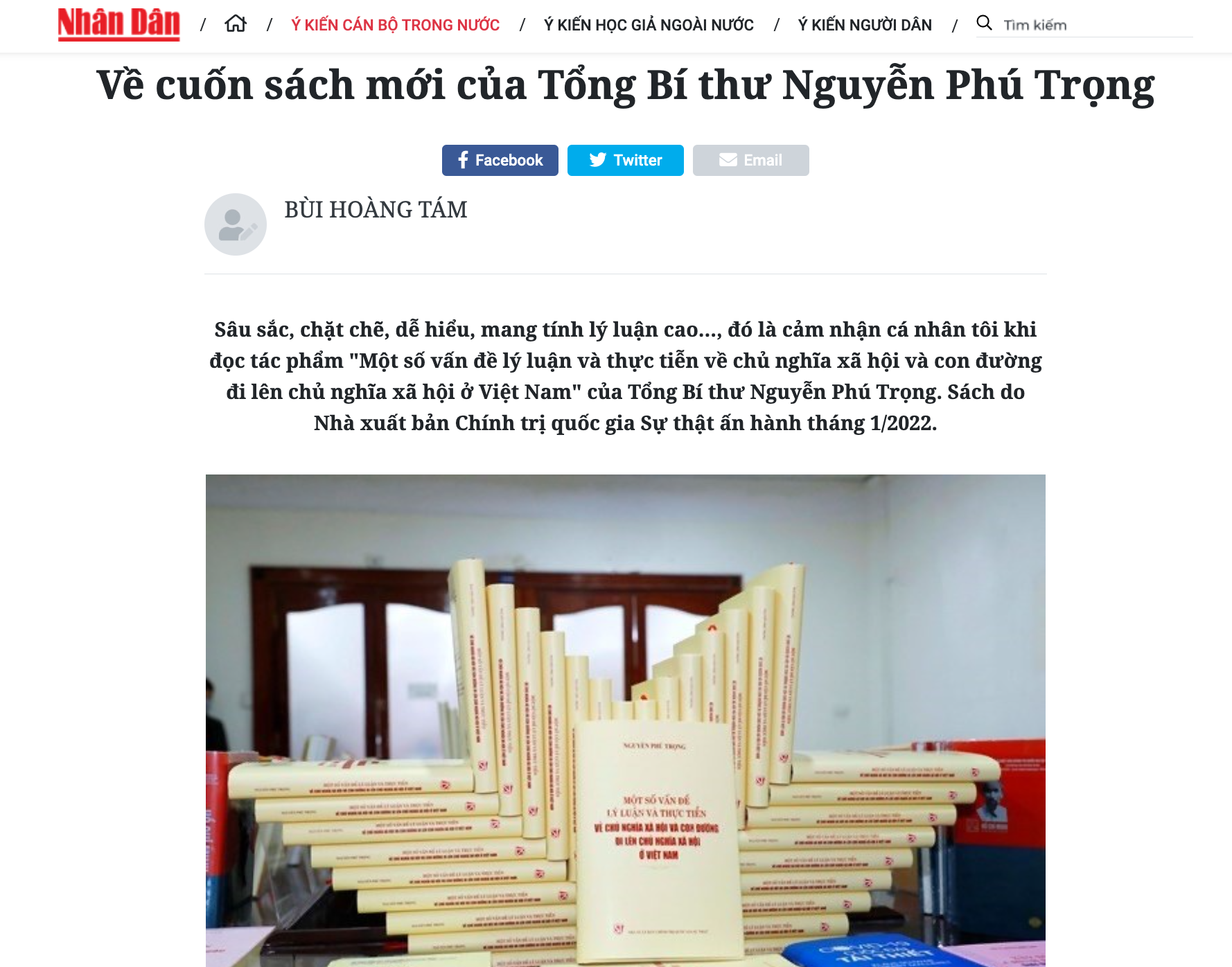 Ý kiến của đảng viên khi đọc cuốn sách của Tổng Bí thư Nguyễn Phú Trọng đăng trên Báo Nhân Dân.