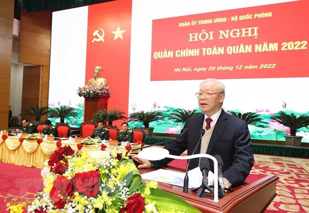 Hôm nay, Quân ủy Trung ương, Bộ Quốc phòng tổ chức Hội nghị quân chính toàn quân để tổng kết công tác quân sự, quốc phòng năm 2022 và triển khai thực hiện chủ trương, quyết nghị của Quân ủy Trung ương về nhiệm vụ năm 2023. Tôi rất vui mừng tới dự hai Hội nghị quan trọng của chúng ta đúng vào dịp kỷ niệm 78 năm Ngày thành lập Quân đội nhân dân Việt Nam (22/12/1944-22/12/2022), 33 năm Ngày hội quốc phòng toàn dân và 50 năm Chiến thắng "Hà Nội - Điện Biên Phủ trên không".