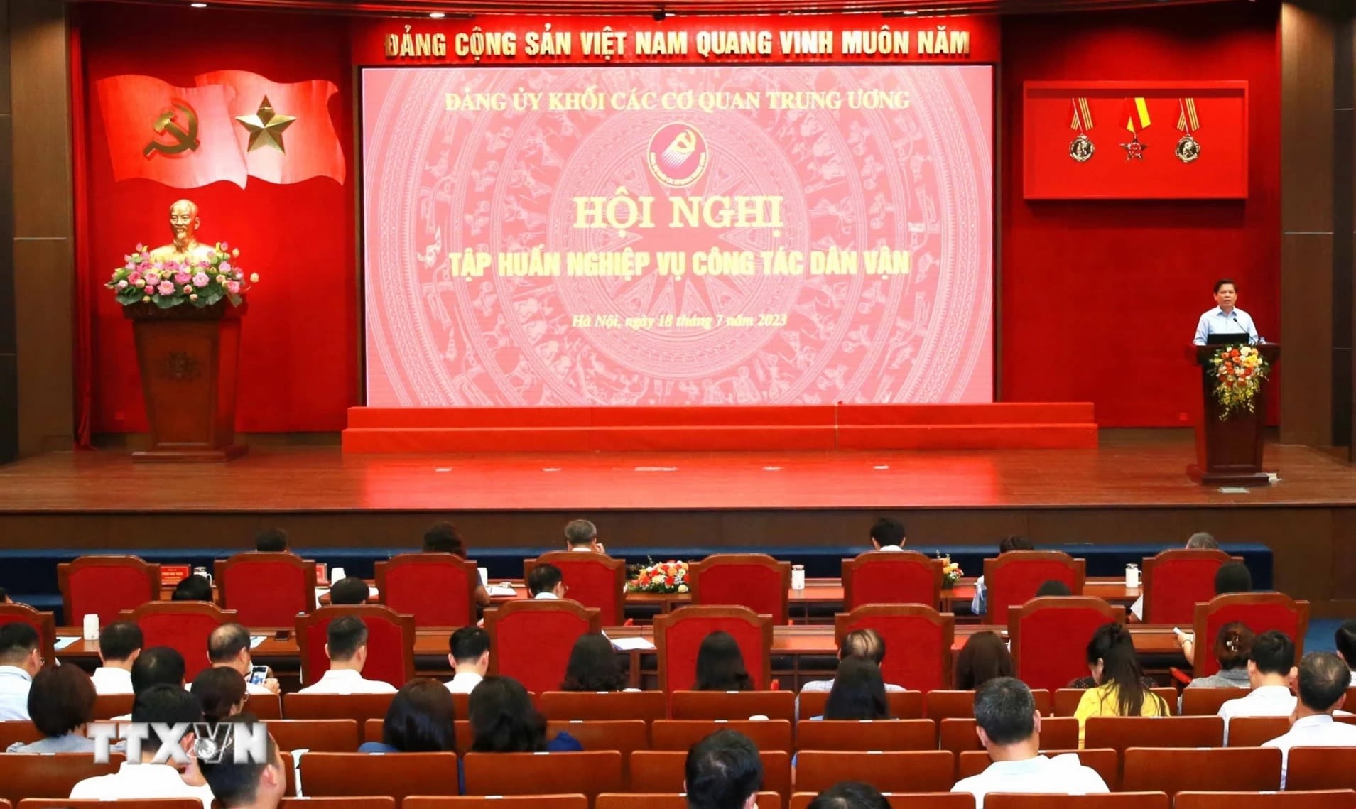Quang cảnh Hội nghị tập huấn nghiệp vụ công tác dân vận năm 2023 do Đảng ủy Khối các Cơ quan Trung ương tổ chức, ngày 18/7/2023. (Ảnh: Phương Hoa/TTXVN)