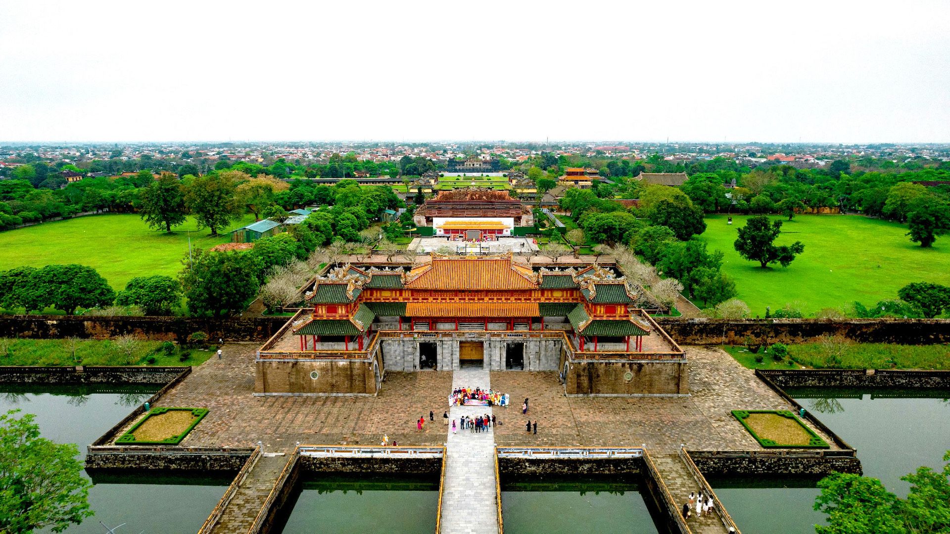 Nhìn từ trên cao, Đại Nội Huế hiện lên rực rỡ, tỏa sáng giữa thành phố di sản. Ảnh: LÊ HOÀNG