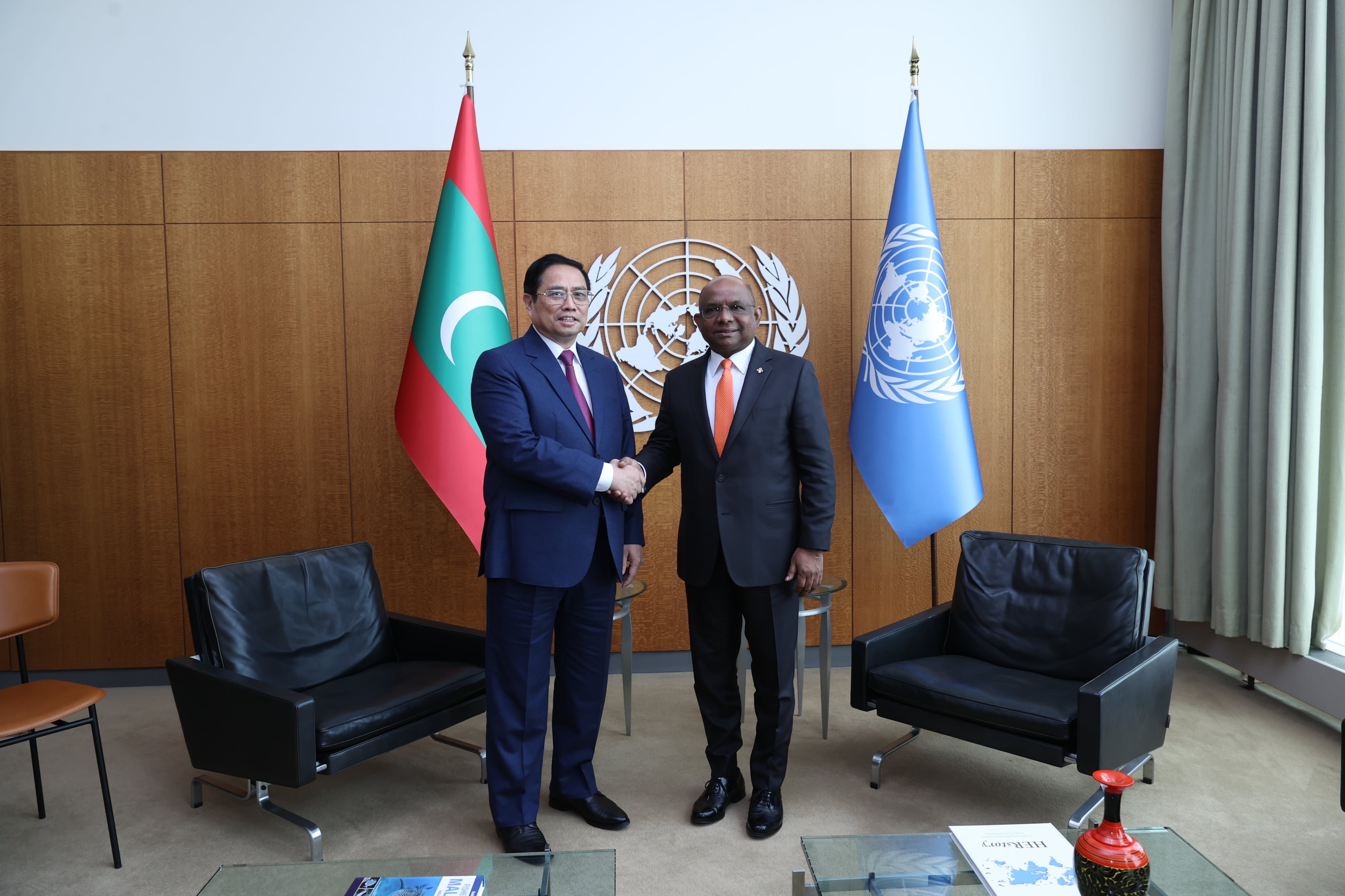 Thủ tướng Phạm Minh Chính làm việc với Chủ tịch Đại Hội đồng Liên hợp quốc Abdulla Shahid